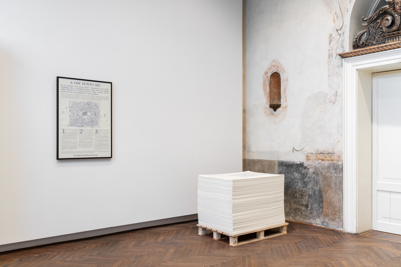 Proprio Venezia, ora, gli dedica un’elegante esposizione, negli spazi della Casa dei Tre Oci, sull’isola della Giudecca. La personale, presentata da Berggruen Arts & Culture e Berggruen Institute Europe è curata da Mario Codognato e Adriana Rispoli e prende il titolo, alquanto programmatico, di The-exchange-value-of-language-has-fallen-to-zero (“Il-valore-di-scambio-del-linguaggio-è-sceso-a-zero”).