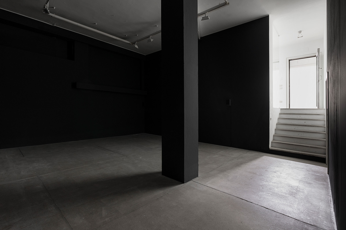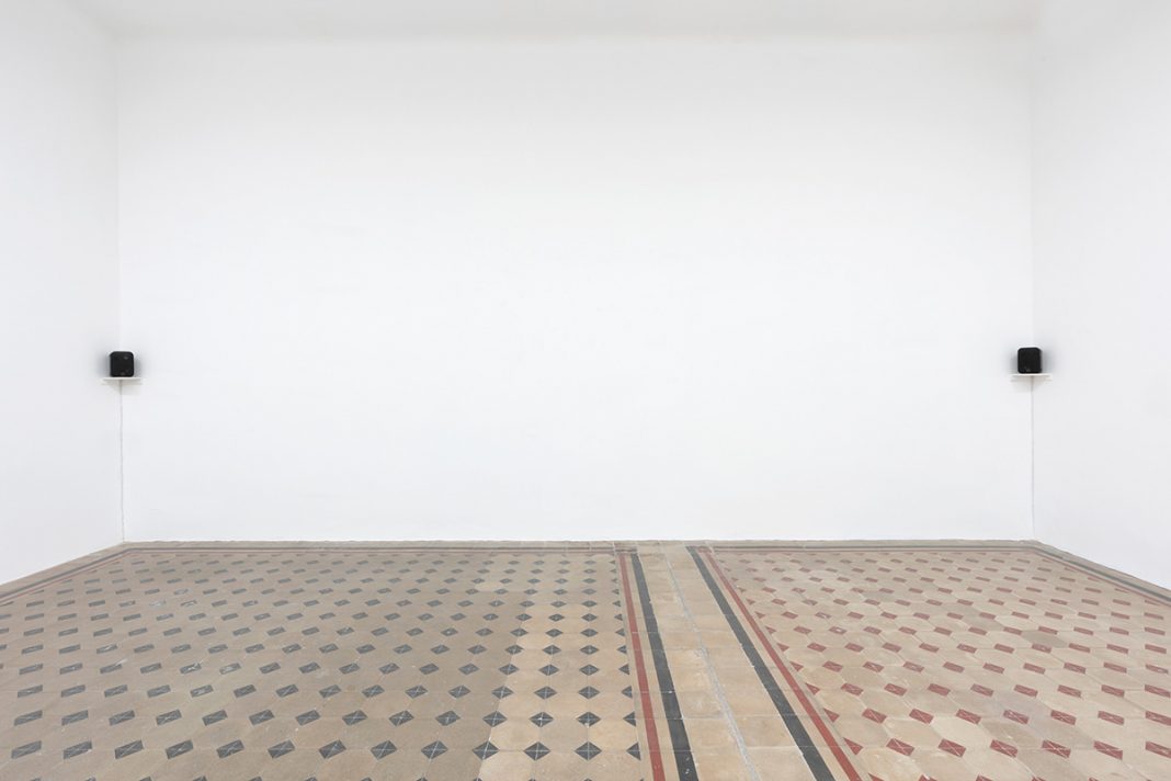 Al civico numero 4, Marcello Maloberti (1966) con Cicerone (2018), una trascrizione della registrazione sonora, da ascoltare senza avere fretta la voce professorale di Roberto Carozzi che descrive il ciclo di affreschi del 1524 di Lorenzo Lotto (1480-1557) dell’Oratorio dedicato a Santa Barbara fatto costruire nel 1499 dalla famiglia Suardi di Trescore (Bergamo). Le parole si dilatano dello spazio bianco, vuoto e irrorato dalla luce naturale delle vetrine della galleria. E qui basta chiudere gli occhi e lasciarsi condurre dalle parole del narratore suadente dentro la tavolozza brillante dei colori lotteschi e le scene ispirate alle vite di santa Barbara e santa Brigida interpretate in maniera originale dal maestro veneziano del Rinascimento, anticonformista. Gli affreschi si dispiegano su tre pareti in un’ ampia aula di 8,12×4,68 metri nell’Oratorio bergamasco dal complesso programma iconografico sono un capolavoro ancora poco conosciuto al grande pubblico, che in questi tempi di “vacanze in prossimità”, sarebbe il caso di scoprire. E noi esuli, lungo il pendio dell’immaginazione, trascinati dolcemente da interventi sonori sospesi tra presenza e assenza, respiriamo l’eternità dell’arte, attraverso il senso dell’ascolto, sopito in un mare magnum di immagini consumate in rete. Così facciamo riposare l’occhio, perché la mostra suggerisce un approccio “in levare” per liberarci dai condizionamenti dell’immagine, con semplicità attraverso evocazioni sonore da ascoltare e non da raccontare.