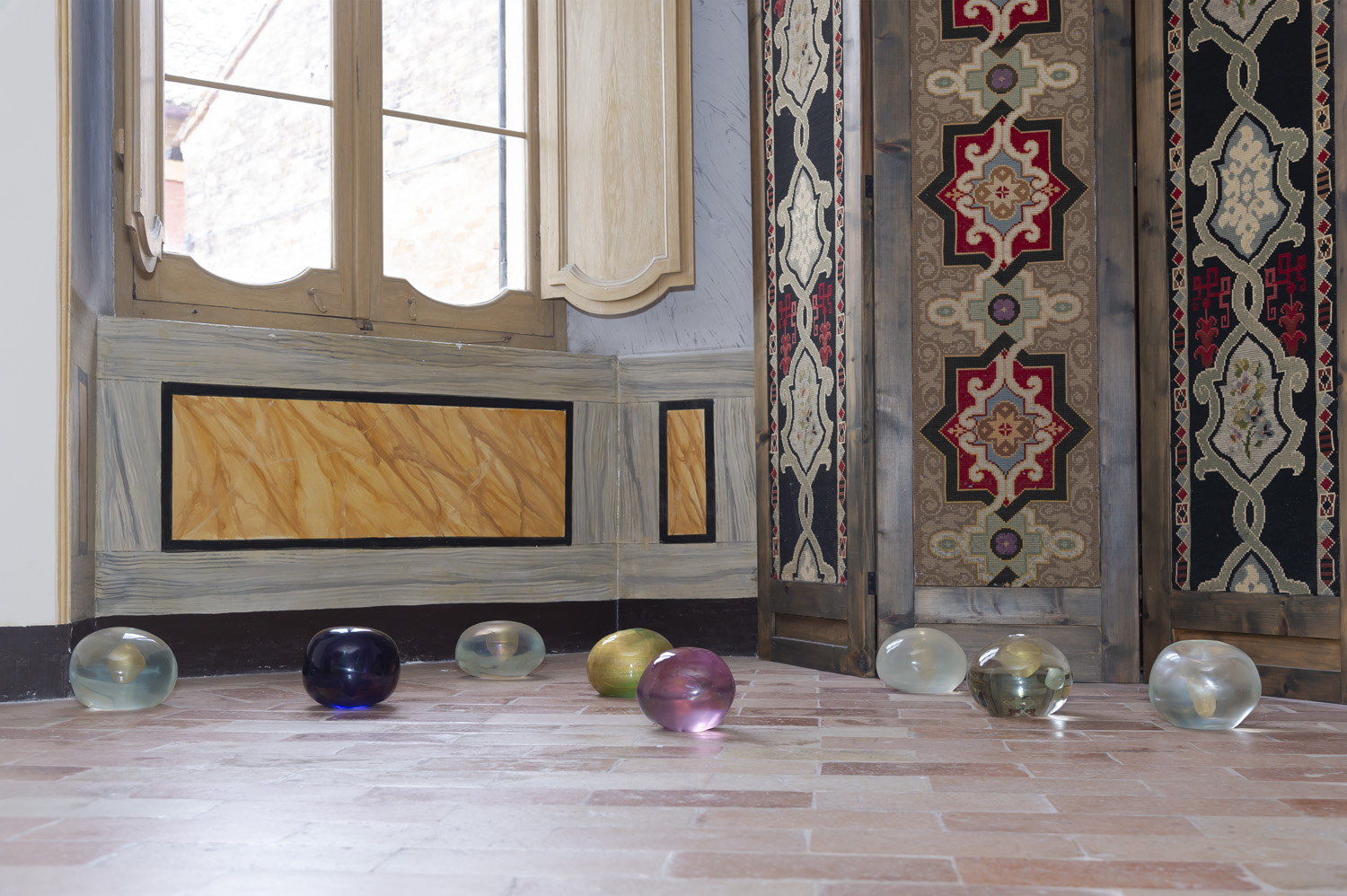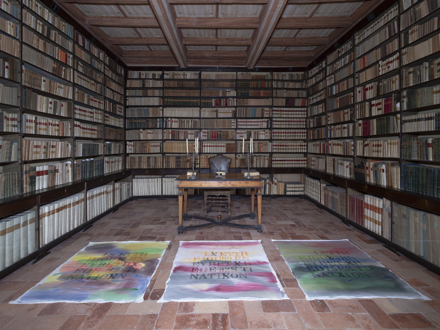 Tomaso Binga, Jeanne Gaigher, H.H. Lim, Maurizio Mochetti Melissa Lohman, Patrizia Molinari, Adrian Tranquilli, Narda Zapata, sono gli artisti coinvolti per la prima mostra del ciclo, curata da Antonello Tolve e ispirata a uno dei versi più citati e analizzati de L’Infinito, “io nel pensier mi fingo”. «La forza evocativa del pensiero che si finge, diventa in questa esposizione spazio in cui la ragione lascia il posto all’immaginazione», ha spiegato Tolve. Tra le opere esposte, la serie dei “Sassi segreti” del 2007 di Patrizia Molinari, un trittico di H.H. Lim del 2020, la “Sfera laser” del 1985 di Maurizio Mochetti, un’installazione di Adrian Tranquilli, in dialogo con l’ambiente carico di storie e suggestioni della Biblioteca, oggi costituita da 20mila volumi e iniziata per volere di Monaldo Leopardi e dove Giacomo trascorse lunghe e appassionate ore dedicate allo studio e alla conoscenza.