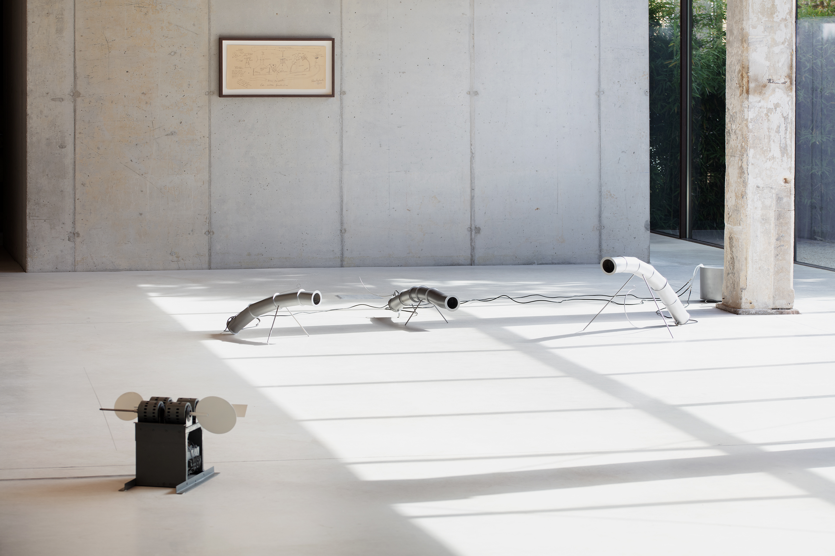 La seconda parte dell’esposizione è legata al suono e al movimento, il quale viene decostruito e rielaborato tramite numerose opere, in particolare con Macchina che respira, 1990, che trasforma il suono dell’aria tramite due pistoni in continuo movimento. Il risultato, udibile tramite due simil-cornette collegate alla macchina, è un suono che rievoca un respiro umano. Essa ricrea le sembianze di un animaletto, che ha un suo proprio movimento e un animus, tanto da respirare.