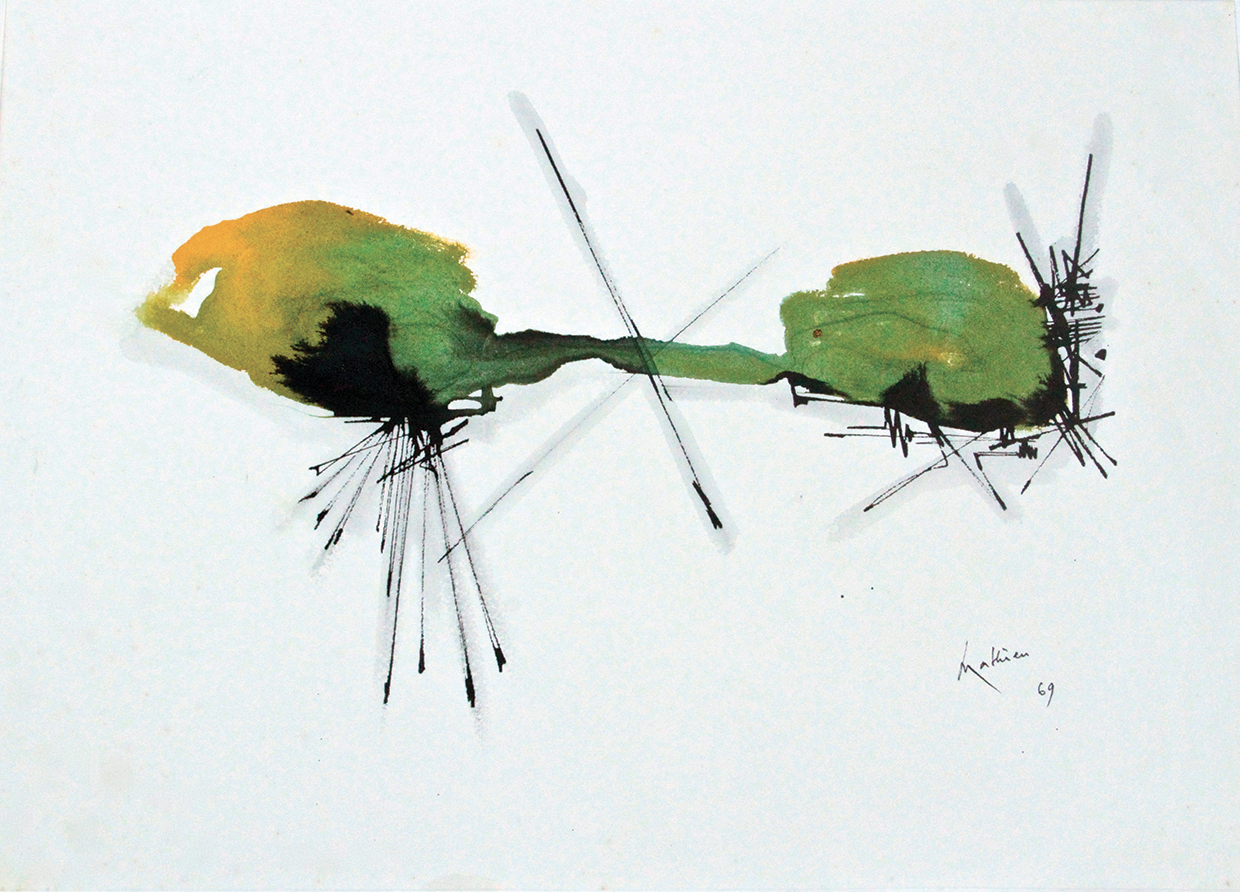 Siediti e osserva, sembra sussurrare una voce di sottofondo nella prima sala del Centro Studi in cui «si è voluto ricreare il senso di eterogeneità della raccolta», come scrive in catalogo la curatrice, e in cui scorgiamo immediatamente un bellissimo salottino Liberty circondato dalle opere, tra gli altri, di Mario Schifano, Emilio Isgrò, Ettore Colla, Enrico Prampolini e Luigi Bartolini. Incredibile ed evocativo lo Spartito di Giuseppe Chiari, musicista, pianista e artista visivo, unico italiano che fece parte del movimento Fluxus. Segni, parole e colore sulla partitura che mostrano la musica e ci ricordano le azioni eclettiche di questo artista poliedrico la cui presenza sottolinea la varietà degli approcci da parte del collezionista. In questo primo spazio si ha la percezione di poter attraversare velocemente tanti anni di storia dell’arte, dall’Ottocento alle Avanguardie, per poi giungere geograficamente, nella seconda sala, nell’Italia centrale, e cronologicamente fare un salto in avanti nel Secondo Novecento. Qui troviamo artisti marchigiani o che hanno lavorato nelle Marche, tra cui il monturanese Sandro Trotti, grande amico di Paci. È sua la prima opera in assoluto della collezione, I ragazzi nell’immondizia, che è anche il primo lavoro venduto dal giovane Trotti che a Roma conosce Guttuso e lo segue nelle cromie e nella scomposizione dei piani. Spiccano in questa sezione anche due nature morte di Sante Monachesi, incontrato a Civitanova Marche negli anni Sessanta, e due opere di Walter Valentini la cui ricerca ha un forte legame con la poetica liciniana.