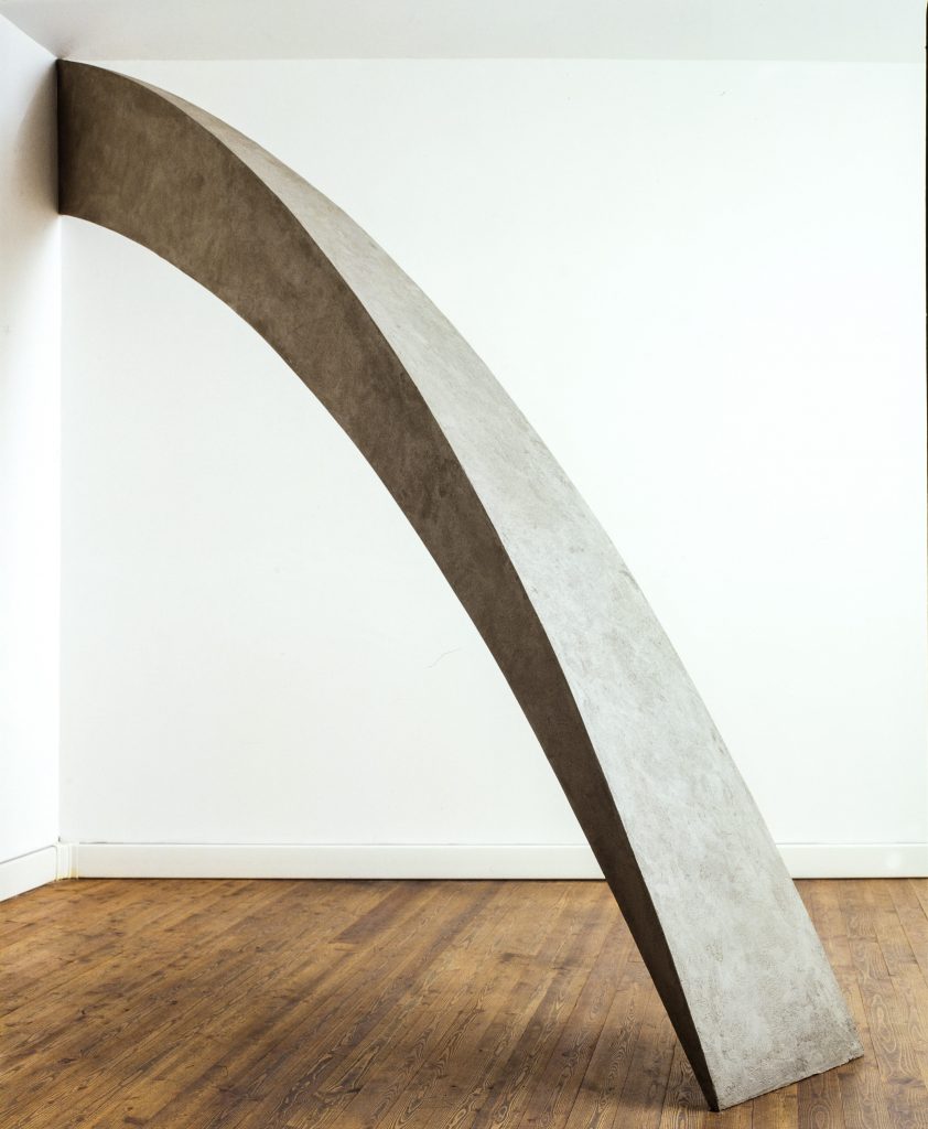 Non più dunque presenze perentorie, severe e cariche di tensione, rappresentazione drammatica delle fratture aspre che dilaniavano il tessuto sociale con irrisolvibili conflitti tra classi, visioni e pensiero, bensì sculture caratterizzate dalla linea curva per sottolineare un nuovo approccio connotato da apertura e dinamismo che supera l’austera rigidità delle forme precedenti senza abbandonarne la portata critica. Come già le grandi installazioni degli anni Ottanta – dalla Rotonda della Besana a Milano (1987), a Seul ’88 (1988) e Prato ’88 (1988) – anche le sculture e installazioni in mostra alla Galleria Il Ponte esemplificano il fatto che attraverso la curva sia possibile trasformare qualunque tipo di spazio in luogo di riflessione e, per certi versi, di partecipazione.