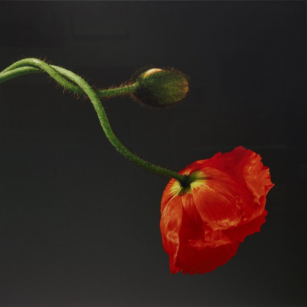 Corpi lucidi e statuari scolpiti come marmo e immortalati in un’estatica tensione sono ritratti in bianco e nero su sfondi monocromo da Robert Mapplethorpe (New York 1946 –Boston, MA 1989). Sguardi intimi e profondi bucano la superficie della carta fotografica, come il seducente scatto di Patty Smith. Una fotografia di grandi dimensioni si impone nella sala espositiva celebrando la forza spontanea di un leggiadro papavero. Il fiore è perpetuato nel tempo in una danza di boccioli e di infiorescenze in un’atmosfera notturna.