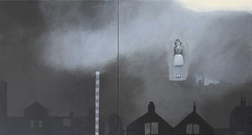 «Nelle quattro opere che vediamo in questa selezione, provenienti da un gruppo di 16 tele, troviamo questa sensazione di precarietà, vista dall’immaginario del bambino», prosegue il testo critico. «Se, come detto prima, non c’è satira qui, non vi è nemmeno la presenza di dettagli melodrammatici: non occorrono, ci ricorda l’artista, perché la tragedia è inerente e non ha bisogno di essere sottolineata».