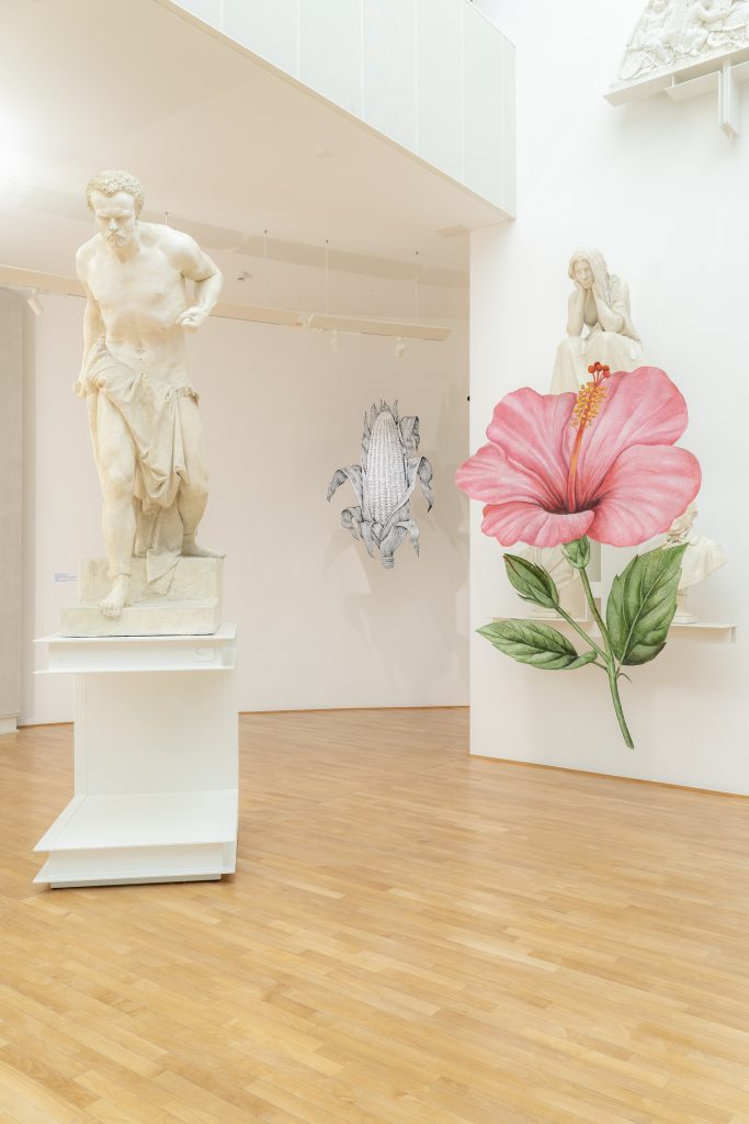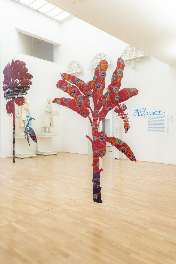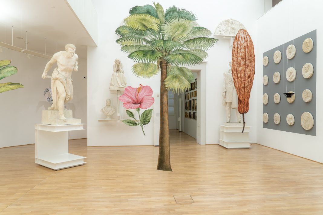 L’opera di Ishita Chackraborty dialoga con lo Spartaco di Vincenzo Vela, che dal 1851 fa parte della collezione del museo e rappresenta il simbolo della ribellione alla dominazione austriaca. L’artista riflette sul significato e sulle conseguenze di quelle che sono le forme di resistenza contemporanea, sul concetto di schiavitù moderna, sull’idea di libertà. Il dialogo con l’opera di Vela avviene attraverso questa stratificazione di significati, sull’idea che la libertà e l’indipendenza siano, ove non siano garantite, da conquistare attraverso la lotta al potere, qualunque esso sia. L’installazione site-specific presentata a Ligornetto si intitola In Passage Tropical e rimanda a un “giardino creolo”, l’esatto opposto delle consuete monoculture coloniali. Il riferimento è quindi agli appezzamenti coltivati dagli schiavi che realizzavano questi sistemi di raccolto per sopravvivere alla barbarie della loro condizione. L’opera presenta anche la possibilità di interagire con essa, attraverso l’ascolto di sette storie di vita di individui emigrati in Svizzera sia di recente che in passato.