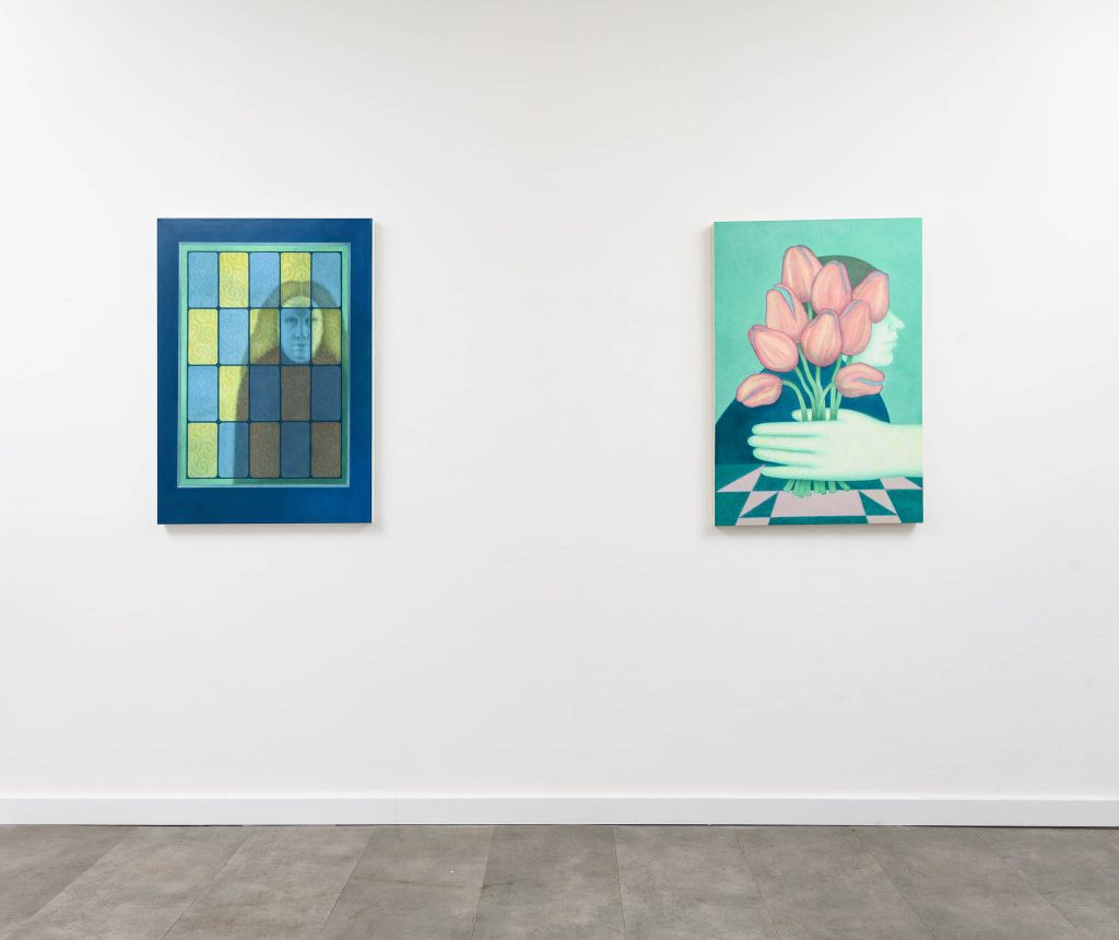 Gwen Evans, classe 1996, è nata nel Wales, e vive e lavora a Manchester. Il suo esordio nel panorama artistico risale al 2024, mentre l’approdo in questa mostra romana è frutto dell’attività di ricerca della Galleria Monti8.
