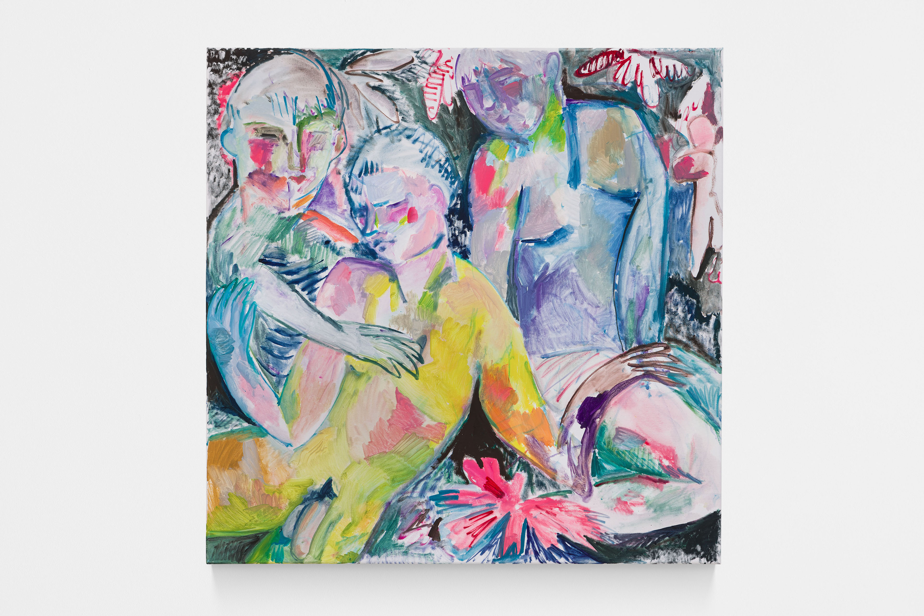 L’artista mette in campo un complesso sistema di significati, malcelati dietro alla disinvoltura di gesti e pose dei suoi personaggi, che dichiaratamente sono legati alla rappresentazione ma non vincolanti nell’interpretazione.