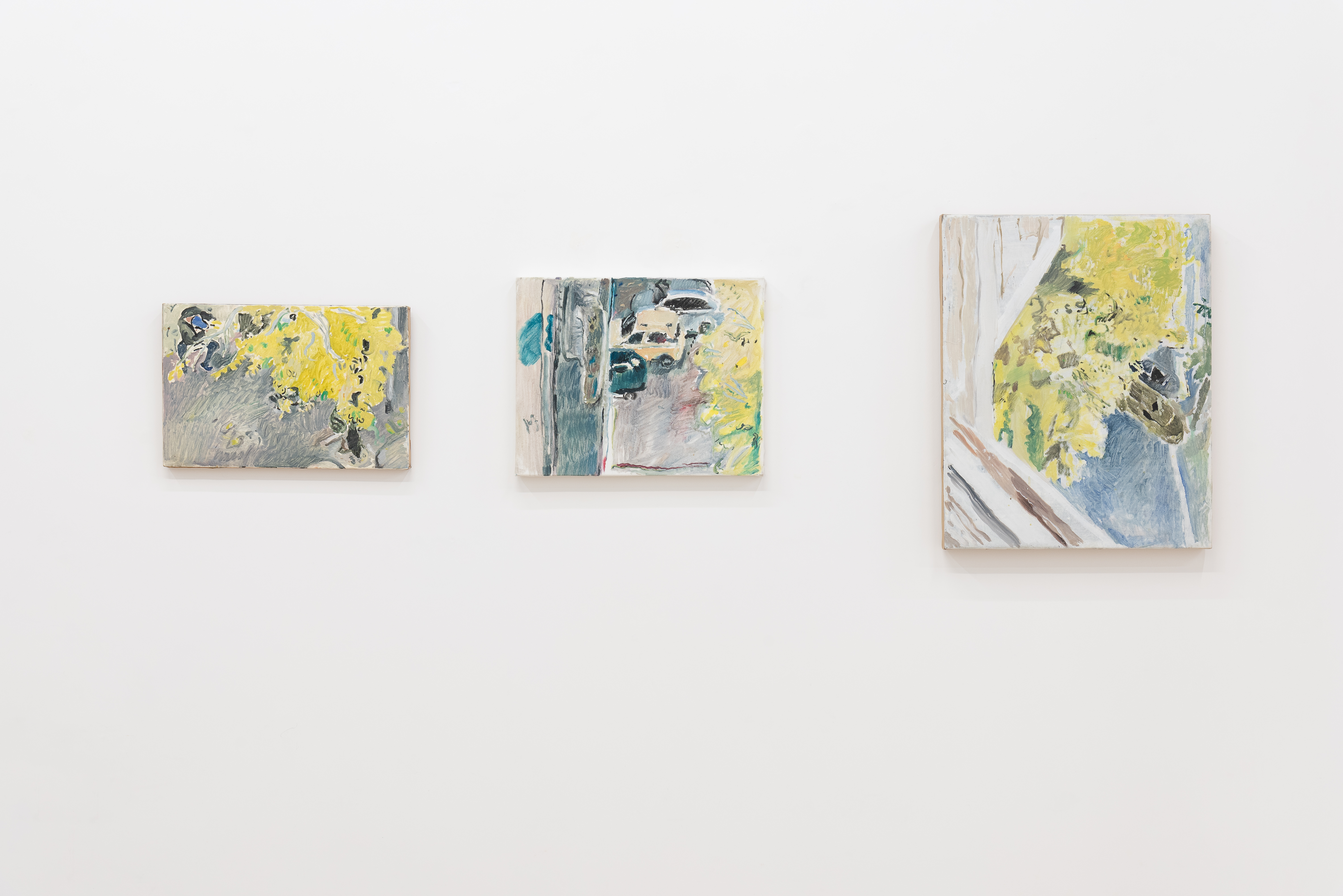 Tuttavia, l’essenza della mostra ruota attorno a una questione ben più profonda, interrogandosi in che modo un dispositivo possa condizionare lo sguardo, e quindi il giudizio interiore che metta in relazione l’io con ciò che lo circonda. Per l’artista, le aperture e le finestre in particolare mostrano soprattutto una condizione: non conta tanto la forma della stanza in cui si trova, quanto ciò che quello squarcio luminoso, idealmente, gli permette di schiudere. Il taglio visivo degli aceri gialli che osserva dalla sua abitazione, le gerbere su un vassoio d’argento e gli stipiti consumati sono elementi costruttivi di un racconto solo accennato. Eppure, per l’artista un quadro ben composto, con le sue disposizioni, gli equilibri, le linee direzionali, le lievi anamorfosi e i punti focali è risolto solo per metà, il resto è completato dai toni tenui e dai morbidi contrasti cromatici dei profondi blu, dell’ocra, dell’arancio e dei gialli.