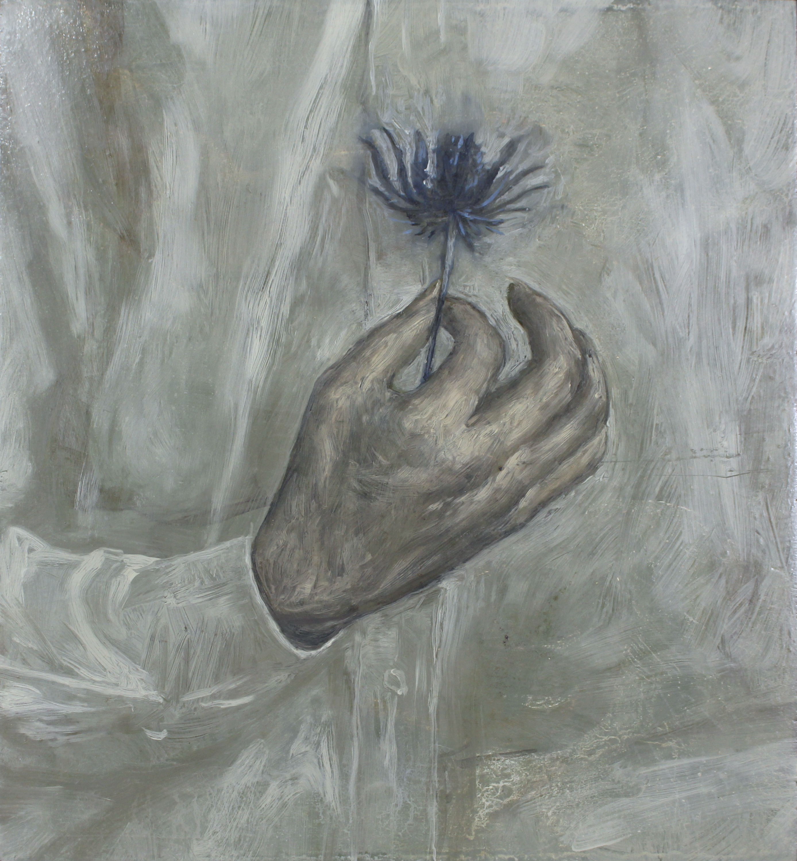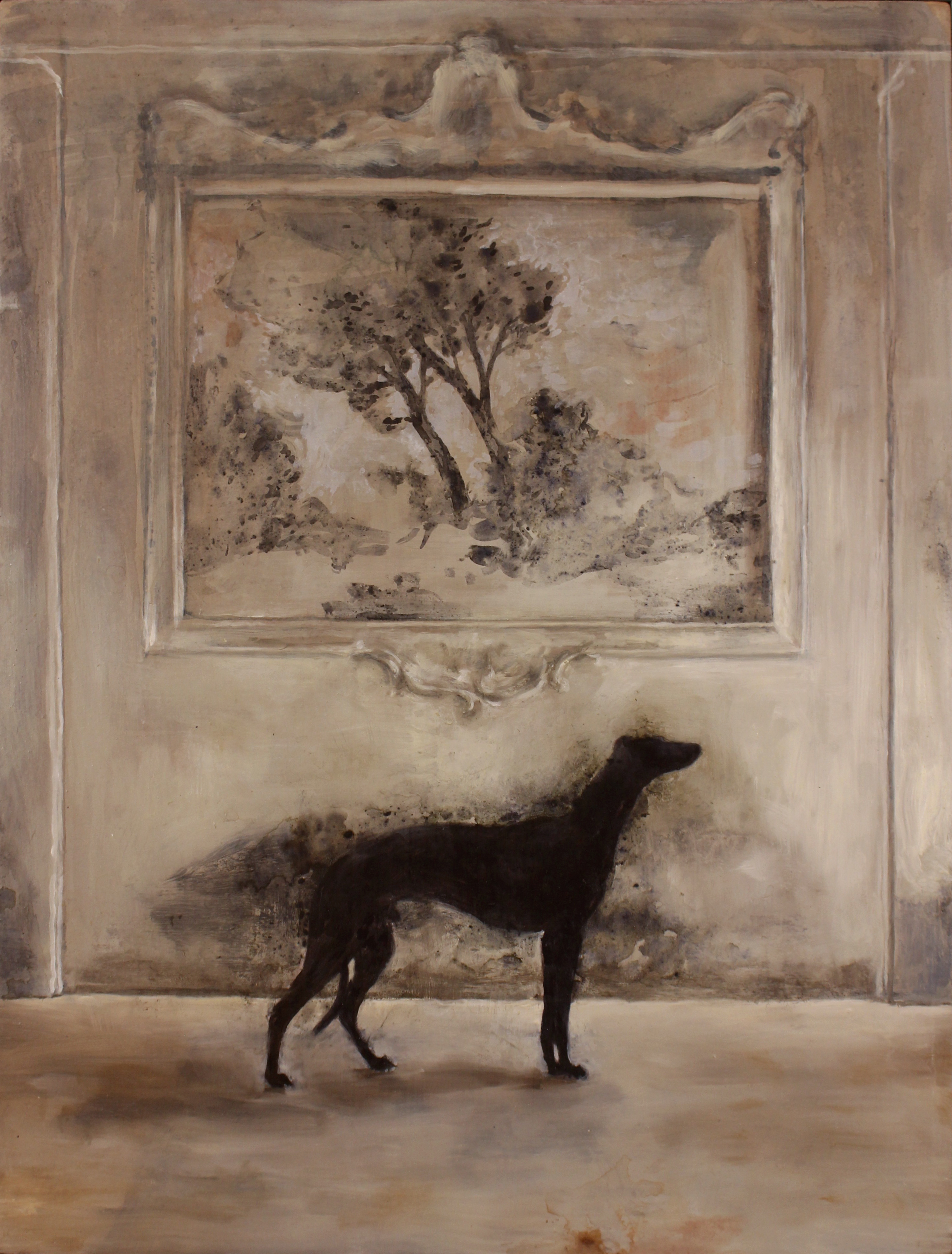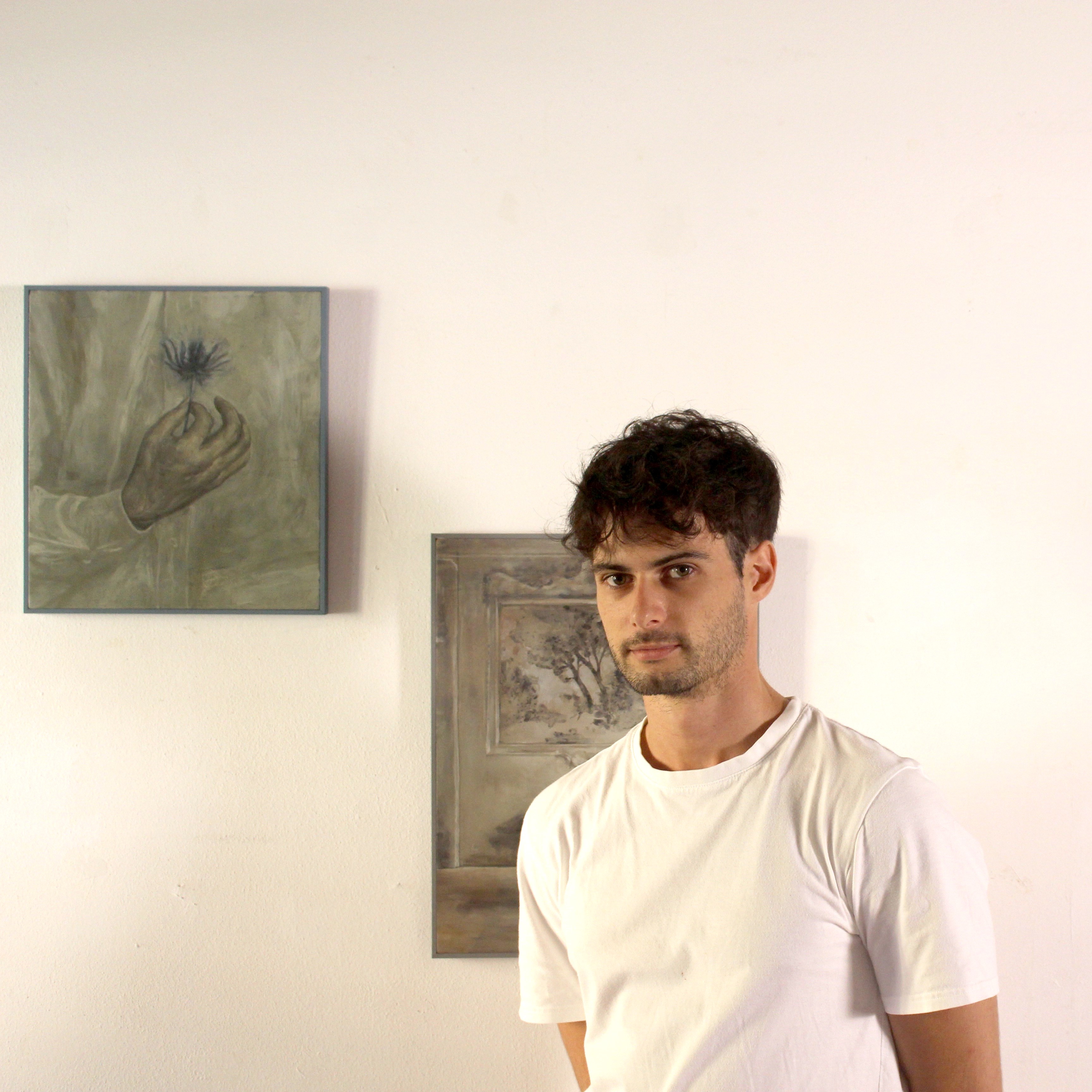 Nei suoi lavori, i levrieri e i rapaci diventano custodi di una dimensione liminale, tra cielo e terra, mentre le piante simboliche, come cardini di un lessico spirituale, evocano sofferenza e resilienza. Ogni opera appare come una soglia che non si lascia varcare completamente: porte socchiuse, tende teatrali e prospettive interrotte costruiscono un linguaggio visivo intimo, in cui l’immagine si ferma nel punto in cui qualcosa potrebbe mostrarsi, restando sospesa e ambigua, esprimendo una tensione che attraversa secoli di tradizione artistica fino a rinnovarsi nella sensibilità contemporanea.