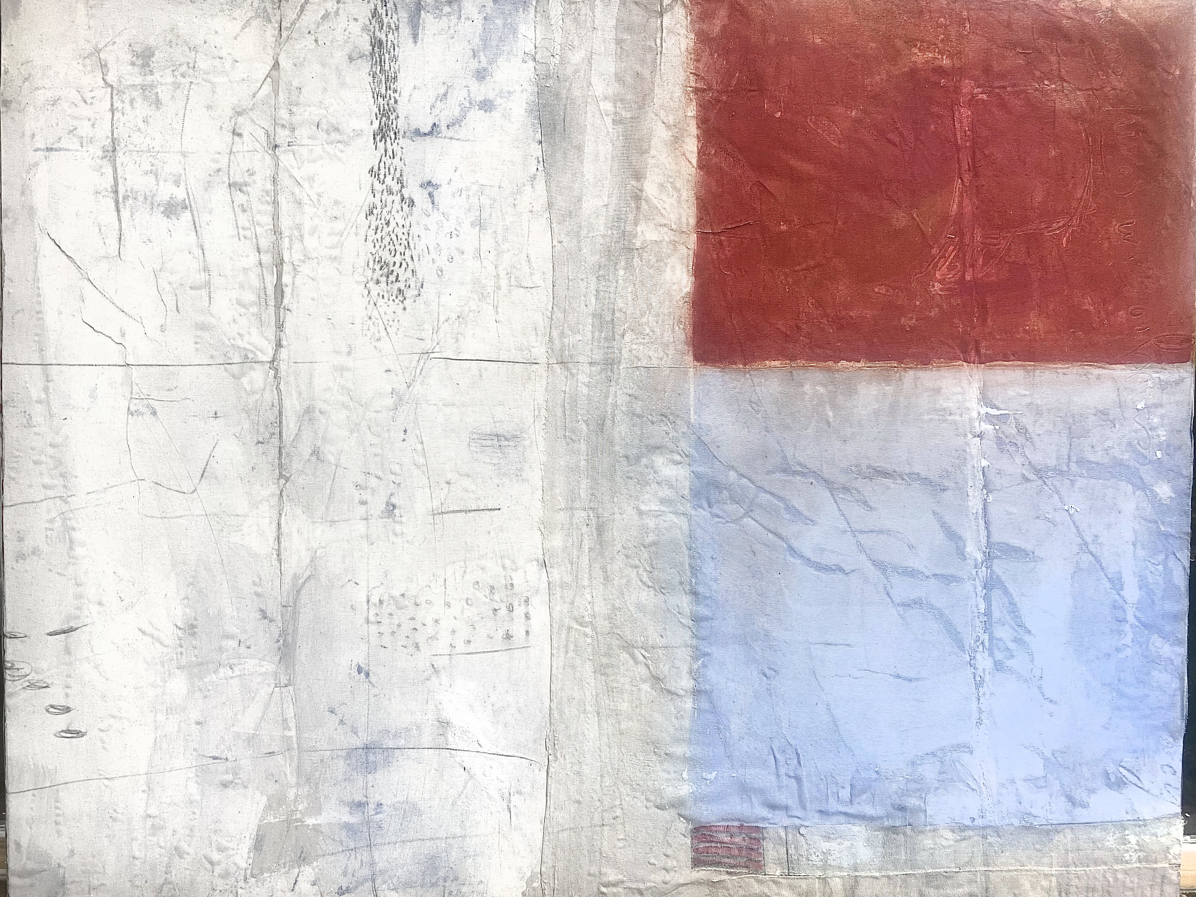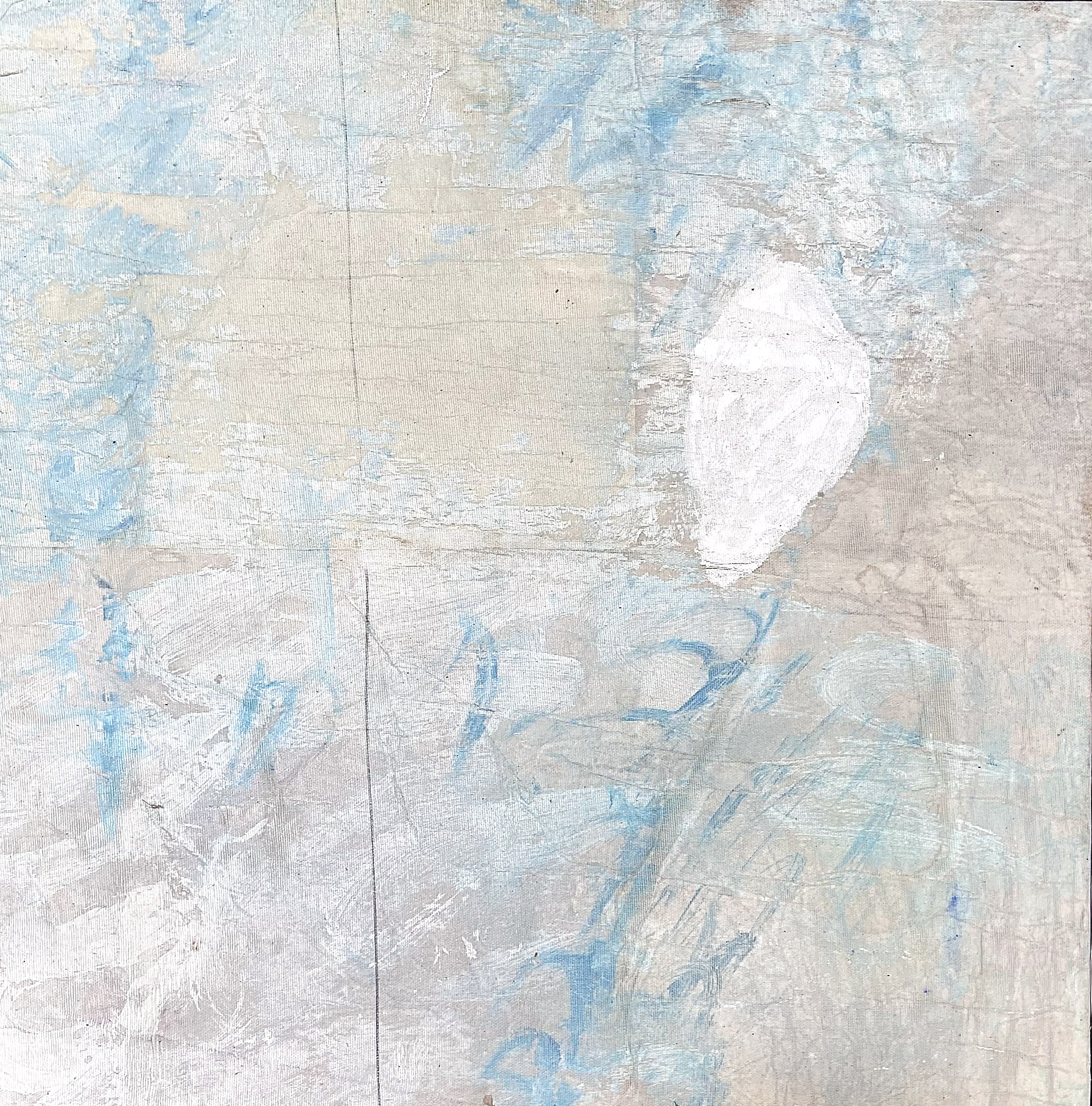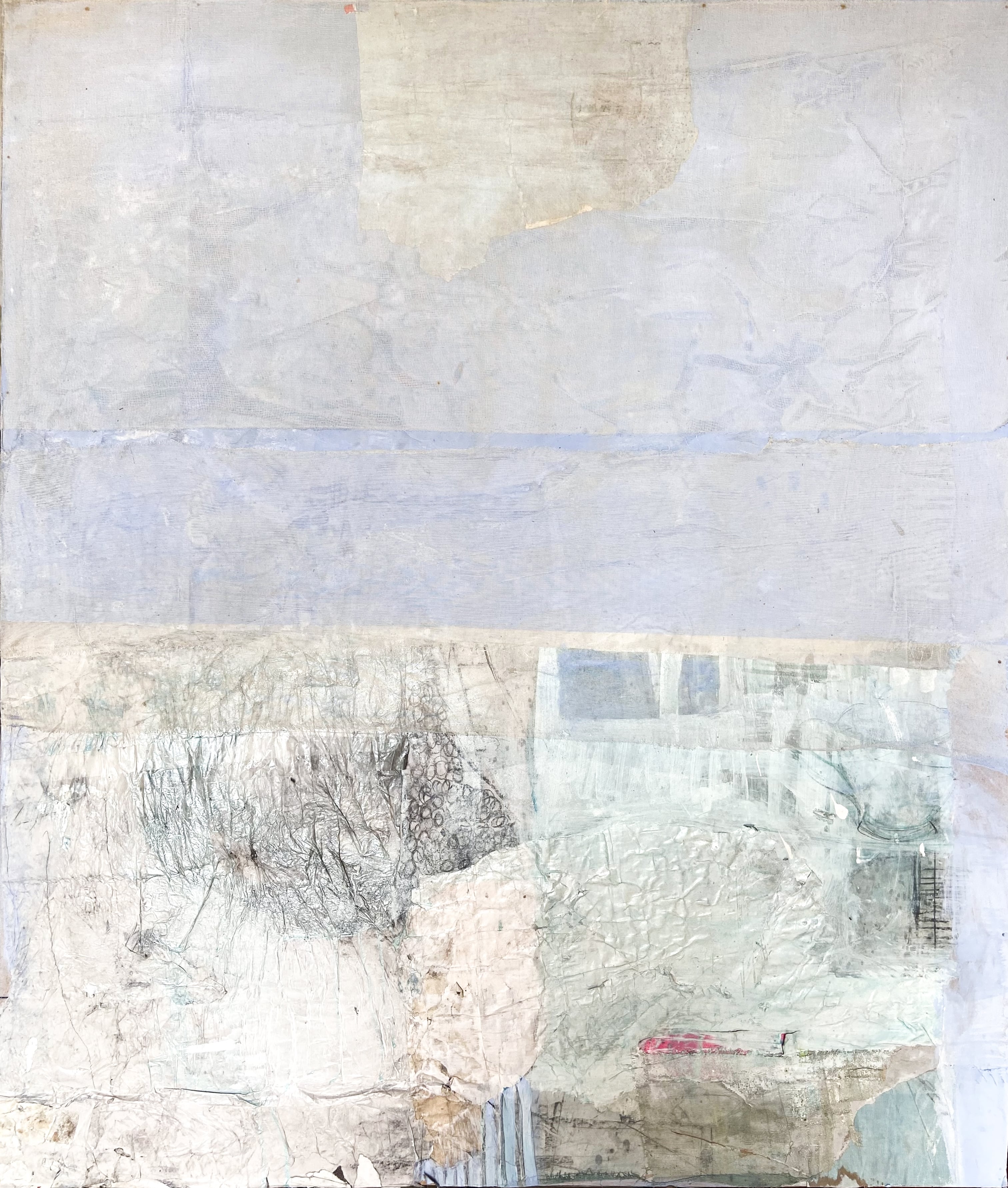 Gli occhi velati dal sonno, le lenti della montatura hanno un sottile strato di polvere, il fumo, che sale serpeggiando dalla tazza di tè, si perde e non si sa se sia lui o l’espirare dell’artista ad appannare leggermente il sottile vetro. Di fuori sta iniziando l’inverno: una pervasiva nebbia mattutina avvolge la casa, si fonde nei colori della foresta dilaniata dal terremoto e, più in là, lascia solo lo spazio a una potente e vorace nuvola biancastra che riflette un cielo quasi di mare. Infine, ecco il noto ignoto che sputa la caligo marina, una massa di infinita umidità sull’Adriatico. Così immagino Mauro Pipani, in riflessione prima dell’inizio di questa danza giornaliera di colori, strati e piani visivi per preparare la mostra Über die Ferne, omaggio a Paul Celan, tradotta dal curatore Flaminio Gualdoni come Oltre la lontananza e visitabile alla Galleria Monopoli di Milano.