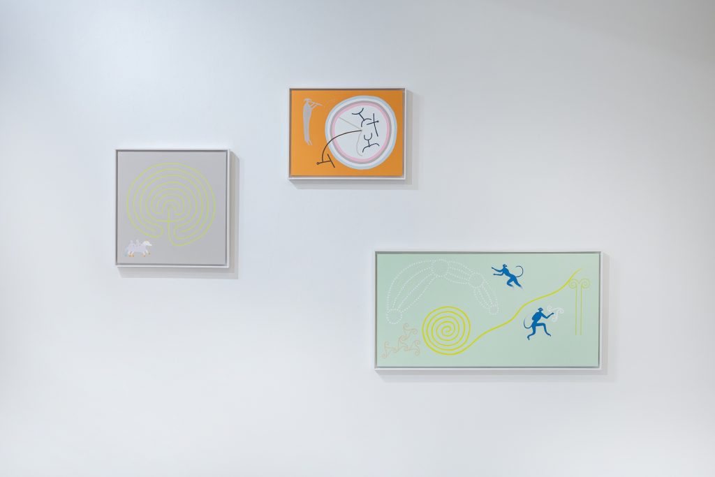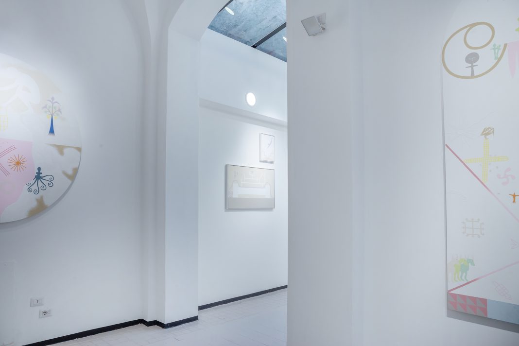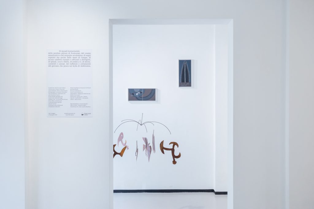 Le opere esposte — oltre trenta tavole inedite e installazioni — fondono simboli, miti e narrazioni provenienti da contesti differenti ma accomunati da archetipi universali. I titoli delle opere, lungi dall’essere marginali, sono parte integrante del lavoro: parole-chiave che ampliano l’orizzonte interpretativo e suggeriscono nuove piste di indagine.