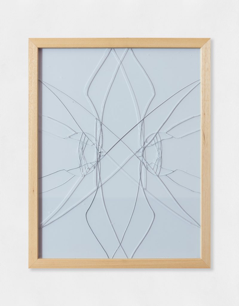 Cosa può nascere da un vetro rotto? La risposta più comune che si potrebbe dare, ovvero niente, contribuisce in misura determinante al processo di creazione dell’opera. È un paradosso, sì. Ma cos’è del resto la crepa se non l’elemento centrale del paradosso?. Ragionando dunque per paradossi Andrea Francolino è arrivato alla sua definizione di quello che è il contrario di un vetro rotto casualmente: un vetro sano di cui lui ricostruisce la rottura. Se da un lato ricalcare una rottura casuale, con il diamante come lui fa, non è altro che il comune, e umano, tentativo di controllare la casualità, dal punto di vista creativo questo è il processo delle meraviglie, che permette di trasformare una disarmonia iniziale in un’armonia infinita che, a sua volta, svela e ammette la varietà della natura. E come alla natura la varietà appartiene anche alla crepa e alla sua universalità, diffusa nella mostra e in tutti i piani espositivi della galleria.
