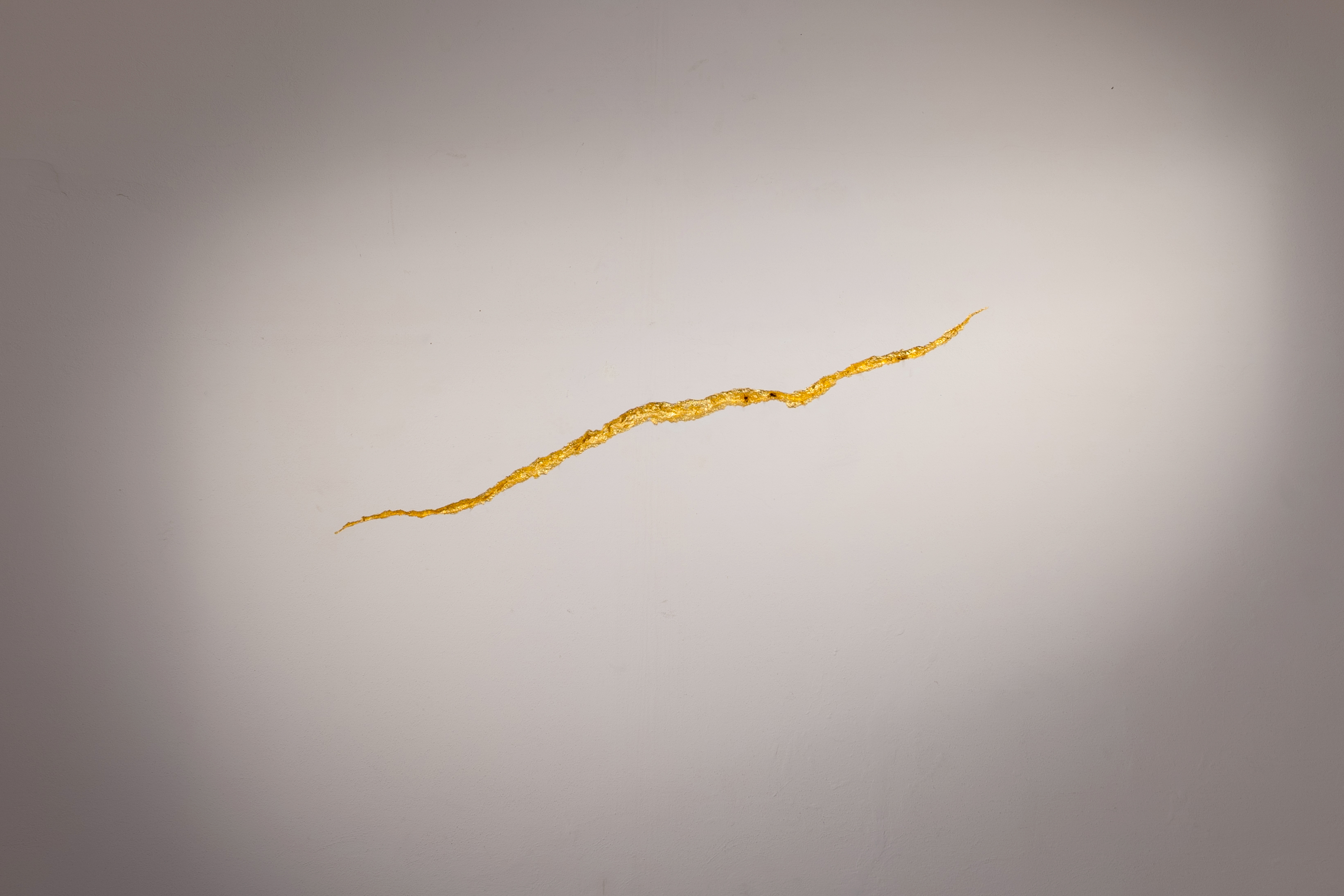 Con il soggetto crepa è innegabile che Francolino omaggi la natura, con la sua forza creatrice e disegnatrice, che si manifesta in ogni dimensione più o meno nota che ci circonda. Nel suo rapporto con l’artificiale, per esempio, di cui è emblema A-Biotic, opera nella quale la rappresentazione della natura cerca un continuo rapporto con le forme vegetali: il paradosso di competere con essa e cercare di imitarla o sostituirla. O nella sua dimensione preziosa e simbolica, che Francolino restituisce con maestria realizzando site-specific una crepa in terra sul pavimento, in oro sulla parete, e “Eccoti un lapis lazoli. Oh, che colore d’azzurro oltramarino da cinquanta scudi l’oncia!” in lapislazzuli sul soffitto.