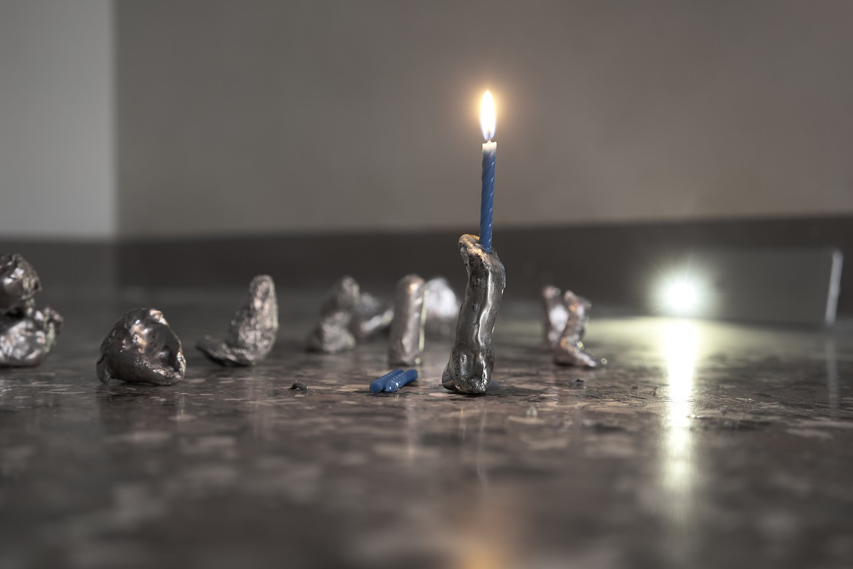 In altre due sale sono presenti delle piccole sculture in argento. Nel primo caso si tratta di un candelabro che riprende la forma del Menorah ebraico con due piccole candele accese, la cui durata è simile al tempo medio che un visitatore impiega per osservare la mostra. In argento sono anche altre piccole sculture filiformi illuminate da una candela: nonostante siano dello stesso materiale e affiancate l’una all’altra non riescono a trasmettere un senso di comunità, ma piuttosto sembrano essere delle singolarità inconciliabili. Nella stessa stanza, avvicinandosi alla candela, è possibile ascoltare il freestyle composto dall’artista.