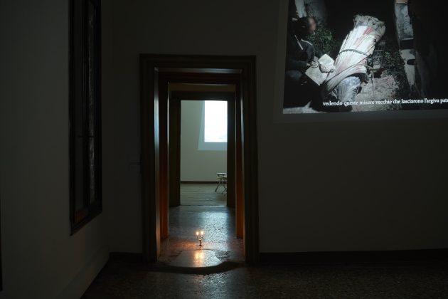 Viene proposta come una denuncia sociale (e inevitabilmente lo diventa), ma ciò che è in mostra è il percorso individuale di g. olmo stuppia, specialmente le sue paure e le sue fragilità. La conferma arriva dal titolo stesso dell’esposizione, che denota che la riflessione sul rischio che ha comportato ciò che è stato e sull’incertezza che questo provocherà, è ancora sospesa sul momento della paura e non ha ancora avuto uno sviluppo risolutivo. Ecco perché la mostra, attraverso la storia individuale, può farsi carico delle esigenze e dei turbamenti universali: accettando di rielaborare il proprio vissuto, l’artista permette a tutti noi di riflettere sulla nostra condizione. In altri termini, si tratta di una narrazione asincrona rispetto alla storia, ed è proprio questa la caratteristica che le permette di osservare con lucidità i fatti e proporne una diegesi, una rappresentazione indiretta, in grado di coniugare eventi reali e vissuti individuali.