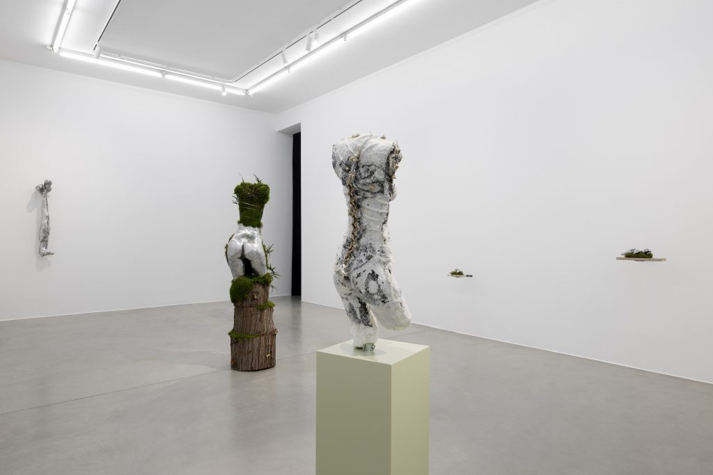 Ambra Castagnetti, nella sua personale da Francesca Minini (fino al 13 settembre, cui seguirà l’apertura di a House of Ink di Ali Kazma) osa, traveste e trasforma lo spazio in un territorio magico e insidioso, popolato da presenze che vivono di energia e ricco di citazioni che spaziano da Le Metamorfosi di Ovidio fino al Manifesto Xenofemminista del 2015, dalla corrente Cyber punk alla filmografia russa degli anni ’70 di Tarkovsky, da cui riprende il titolo della mostra, richiamandosi esplicitamente alla pellicola Stalker del 1979.