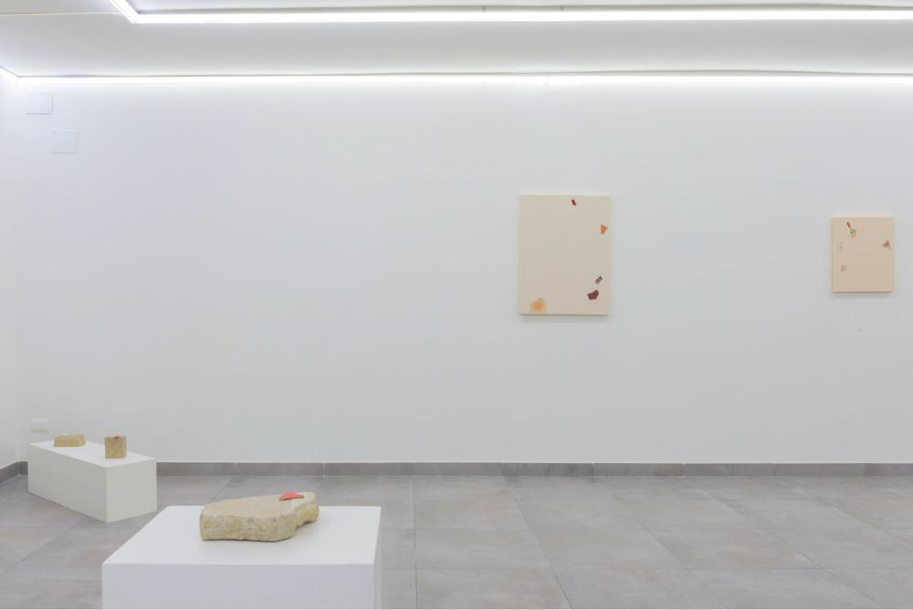 Nella serie About Objects l’artista aggiunge altra materia al pesante marmo, al fitto basalto e alla ruvida terracotta ma questi sembrano alleggerirsi. Da pietra perenne, grigia, solida e imperativa, il marmo diviene innocuo in About Objects, column, quasi privo di scopo. Un morbido relitto che spiazza chi osserva: si assiste all’improbabile circostanza in cui il cotone sembra essersi spaccato in più pezzi. Suggestioni che concorrono, in un modo o nell’altro, ad accentuare sensazioni limitrofe ma possibili, che muovono la soglia tra l’incomprensibile inarrestabile e lo «Stare dentro il rumore senza farsene travolgere», sfiorando con l’ascolto i dettagli dell’affollato abisso sonoro.