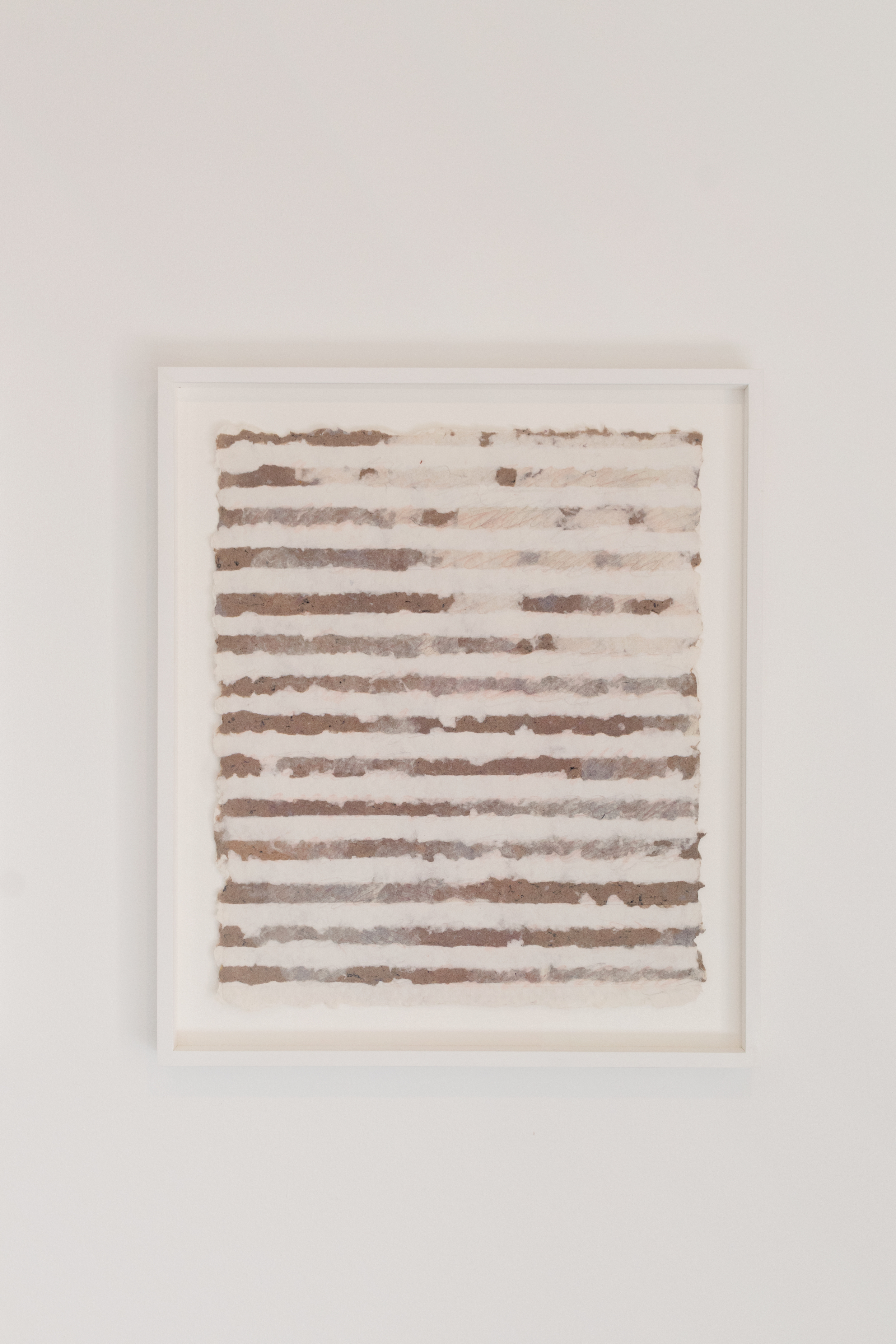 Un tratto che viene sottolineato nelle sue opere grazie ad un altro elemento fondamentale, la carta, che produce manualmente. È un lavoro delicato, il giusto punto d’incontro tra trasparenza, opacità, tipo di fibra e un lavoro meticoloso e paziente, trasformando il supporto in mezzo, o meglio contenuto dell’opera stessa.