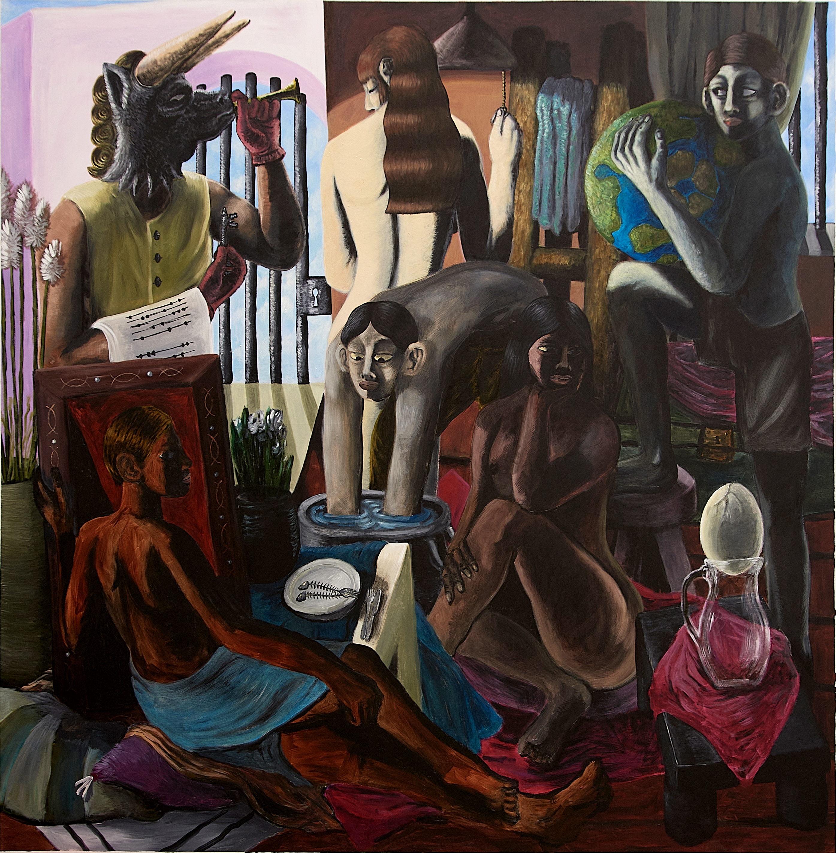 Da Piero della Francesca – che nella Pala di Brera fa pendere dalla conchiglia incassata nel soffitto una perla-uovo – a Bosch, fino agli artisti contemporanei, l’elemento “uovo” è stato usato in molteplici opere. Nell’opera La crepa nell’uovo questo soggetto è richiamato: lo troviamo a chiudere una brocca come fosse un tappo, il suo guscio è segnato da una frattura. I personaggi intorno risultano assorti e immersi in una situazione artefatta, le luci non provengono da fonti naturali creando un’atmosfera rarefatta. Una creatura che riconosciamo come il Minotauro impugna delle chiavi, rappresenta il Daimon e la condizione di fuga dalla prigionia umana in vista dell’elevazione spirituale.