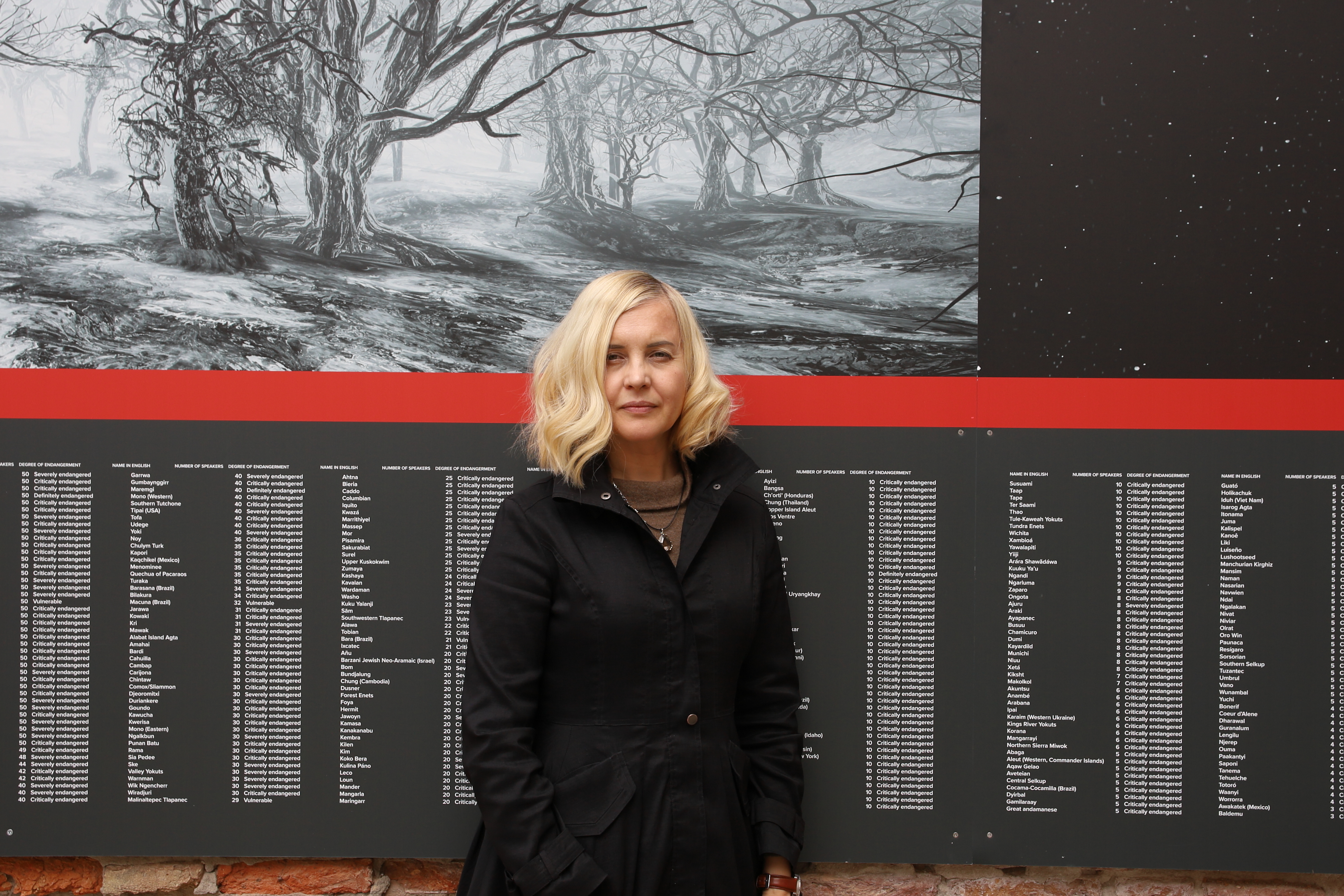 «Le lingue, il mondo pieno di tante voci, quelle sono le mie protagoniste. Il silenzio è ciò che le sostituisce quando se ne sono andate. Come si racconta la fame? – si descrive il pane. Come si racconta il silenzio, una cancellazione culturale? – si fanno suonare le voci scomparse. All’apparenza sembra semplice, ma non lo è. Filosoficamente e artisticamente, è un compito difficile descrivere una sparizione, un’estinzione. Così tutto si incentra sul “Come”. Come mostrare un’estinzione la cui forma è il silenzio. Il mio obiettivo era far risuonare le voci in modo tale che il fatto della loro esistenza non possa e non venga negato. Ecco perché avevo bisogno della tecnologia per creare una full immersion, in modo che l’idea potesse essere realizzata. Volevo che le persone fossero gettate in un mondo pieno di voci estinte e scomparse, nel loro coro. In modo da poter sentire, nella nostra anima, profondamente, la loro presenza, e così, sentiremo la loro scomparsa altrettanto profondamente».