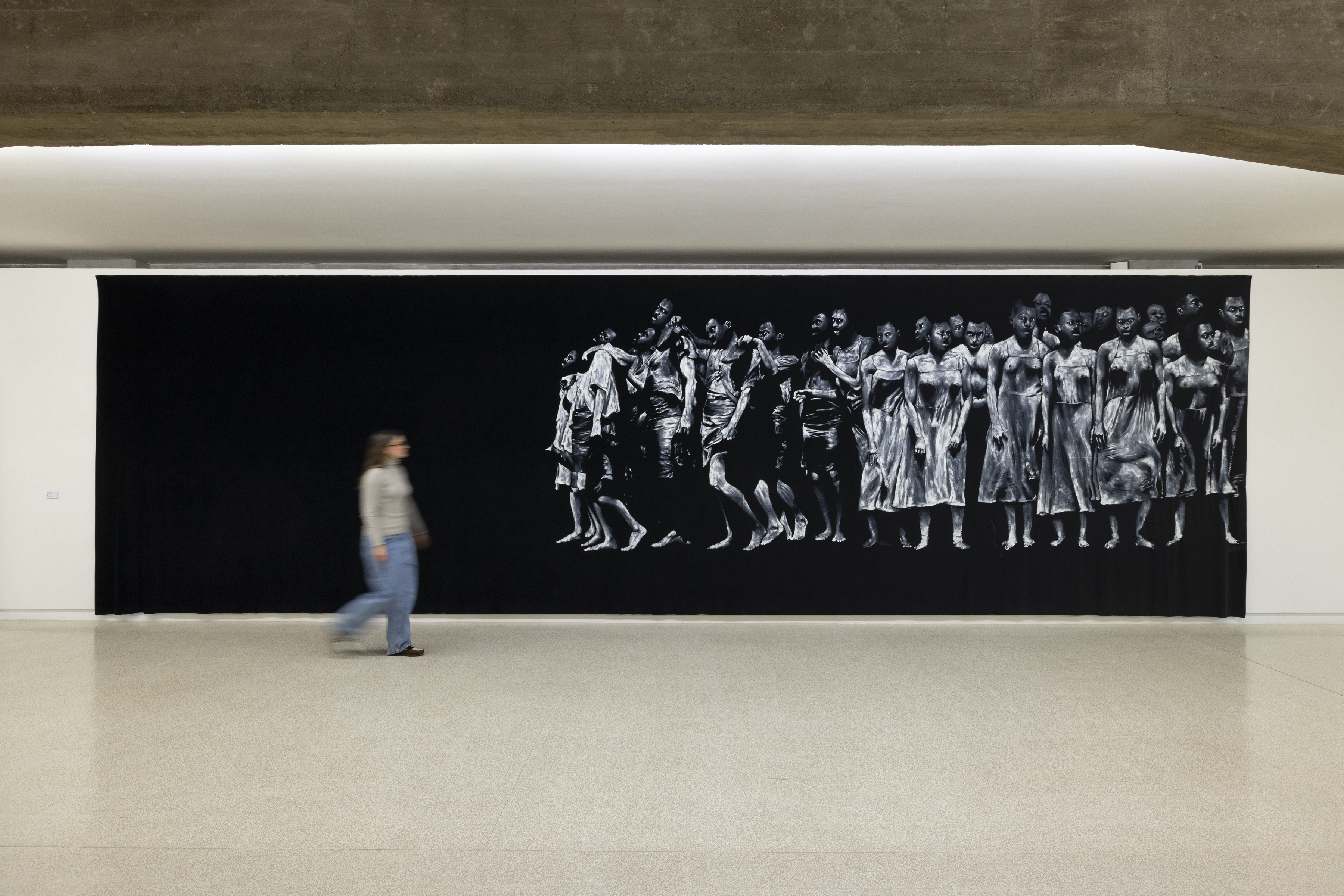 La mostra nella Collezione Maramotti è un viaggio attraverso l’arte e la sua storia, una rivisitazione di quadri classici, fotografie e di capolavori cinematografici. Un percorso che parte dalla Cappella Brancacci di Masaccio, da Caravaggio e arriva all’era contemporaneo della guerra in Kosovo, all’apartheid in Sud Africa, passando da Salò o le 120 giornate di Sodoma di Pasolini. Un racconto lungo 600 anni di Storia dell’Arte che Romeo Mivekannin (Bouaké, Costa d’Avorio,1986) intraprende per spezzare i confini, spaziali e temporali, e far riflettere lo spettatore sulla condizione precaria dell’uomo.