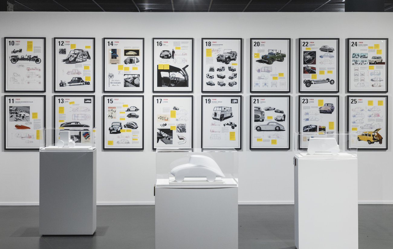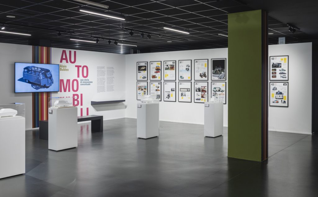 Alain Bublex, quasi poeticamente, definisce l’automobile quello “spazio chiuso che ci contiene e che ci porta” e, fedele a questa definizione e a questo pensiero, costruisce la sua ricerca intorno alla storia delle vetture, indagandone i mutamenti e le trasformazioni nella produzione, nell’uso come nel gusto estetico. La ricerca dell’artista, così, non si limita ad una esposizione di schizzi, progetti, modelli e storie, ma mescola allo stile quasi archivistico dell’esposizione un tono persino vagamente poetico, che allude alle variazioni di percezione che attraverso l’automobile abbiamo dello spazio abitabile e percorribile intorno a noi.