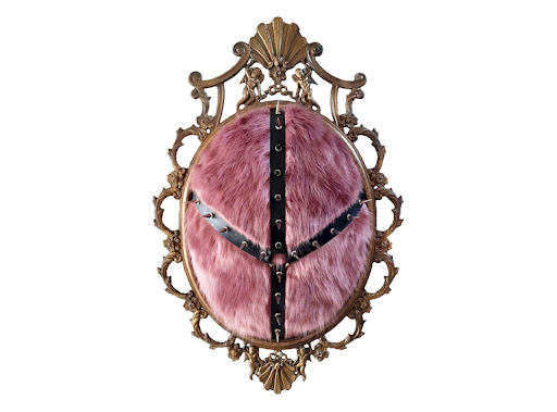 «Il titolo della mostra mette in connubio i due termini “bambine” e “feroci”, all’apparenza ossimorici, che in questa occasione vogliono sostenere il possibile sfatare dei classici luoghi comuni», spiegano gli organizzatori. «La percezione celestiale della donna-bambolina viene ribaltata nelle opere Serialmirrors, una serie di specchi antichi lavorati con tessuti, cinghie e borchie, riflette alcune delle più famose storie di serial killer donne che in epoche passate hanno già demolito certe convinzioni e talvolta creato leggende», continuano. «Un processo di estremizzazione dei simboli si mette in luce nell’opera Girl Power 4010, dove un tirapugni a dondolo rosa si presenta come simbolo di forza e rivalsa femminile». L’accostamento di questa serie di opere rivela come anche il “gentil sesso”, in certe situazioni di disagio o oppressione, può essere letale.