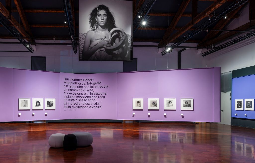 La profondità del rapporto con Patti Smith – musa e amante – è ben evidenziata da una serie di scatti fotografici in mostra. Si tratta di una relazione complessa che si può provare a decifrare nelle varie sfaccettature catturate da Mapplethorpe. Con la stessa cura, ma con un tipo di rappresentazione che esce dalla canonicità del corpo femminile, le immagini di Lisa Lyon, costruite all’interno di un set, propongono un processo di definizione identitaria complesso. L’ideale di scultura classica si unisce qui alla bellezza e alla femminilità entrando in discussione con la muscolarità maschile.