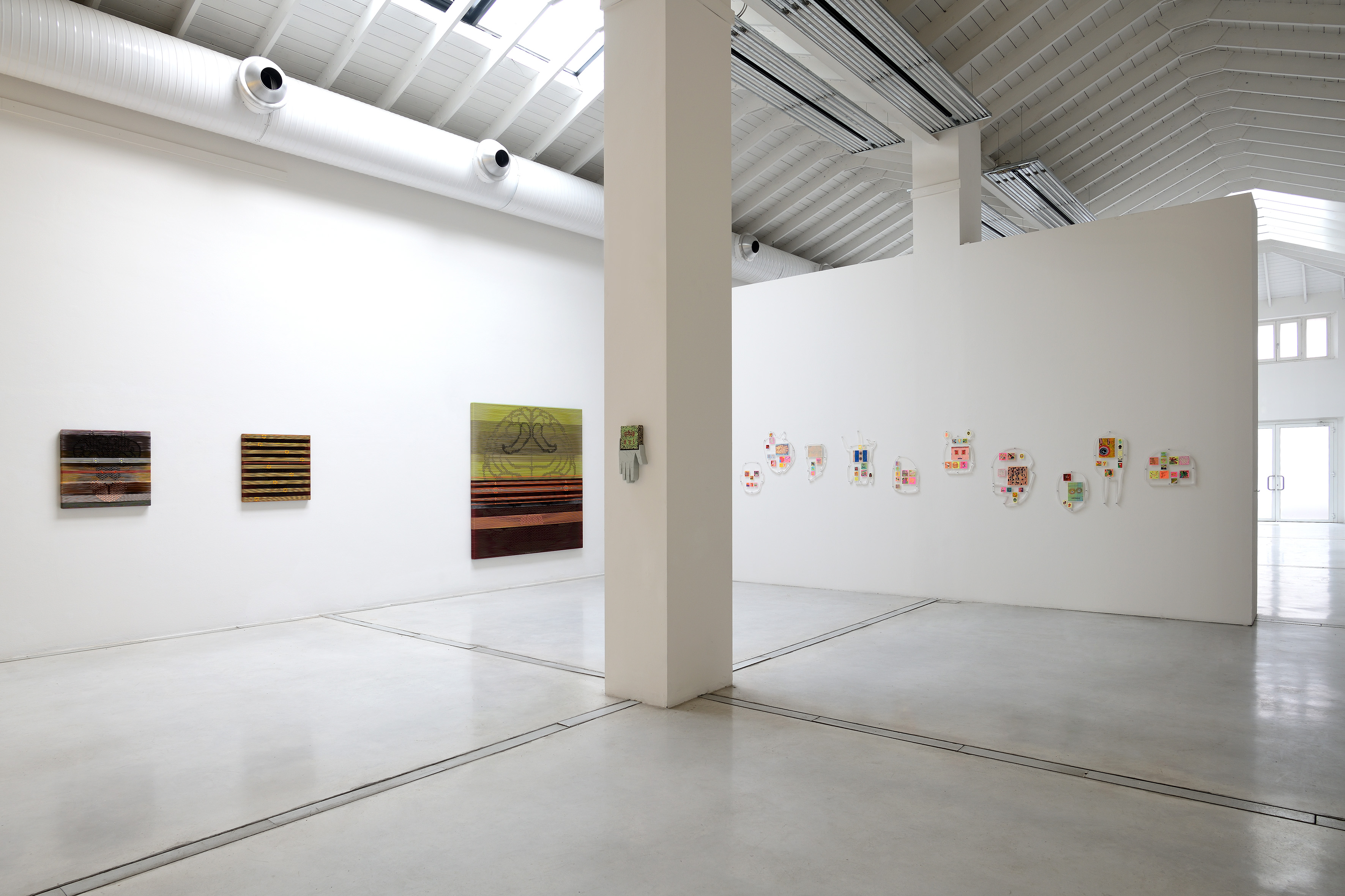 Tra i lavori che invece Arthur Duff ha appositamente realizzato per l’occasione, spiccano due serie frutto della libertà creativa di cui l’artista ha potuto godere durante il lockdown […]. Duff è tornato alla spontaneità tipica della pittura, creando circa 90 post-it che ha successivamente montato su supporti in Plexiglass, la cui sagoma ricorda spesso quella di elmi o di maschere tribali. Accanto a questa serie, sono esposti alcuni ricami su tele mimetiche, questa volta inglobati in supporti di compensato, dai colori fluo, resi lucidissimi dalla tipica verniciatura per auto», ha raccontato la galleria.