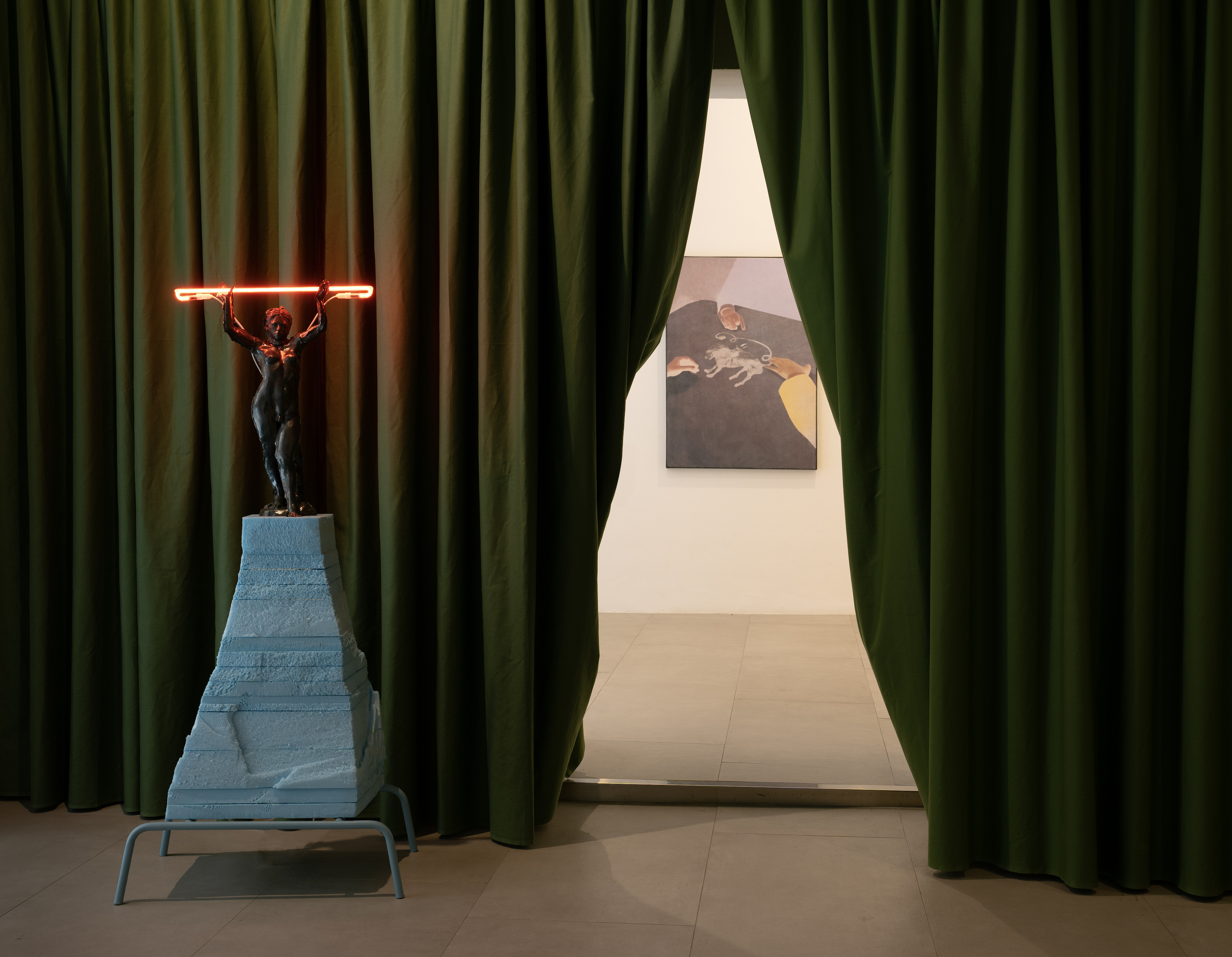 “Mitologema” apre una discussione basata certamente sulla storia, ma che non intende fermarsi alle datazioni, bensì continuare ad esistere in modo fluido e dinamico per parlare, quasi a ruota libera, dei diversi attuali focus, arricchita da opere che non tardano a ricordare che tutto è mito.
