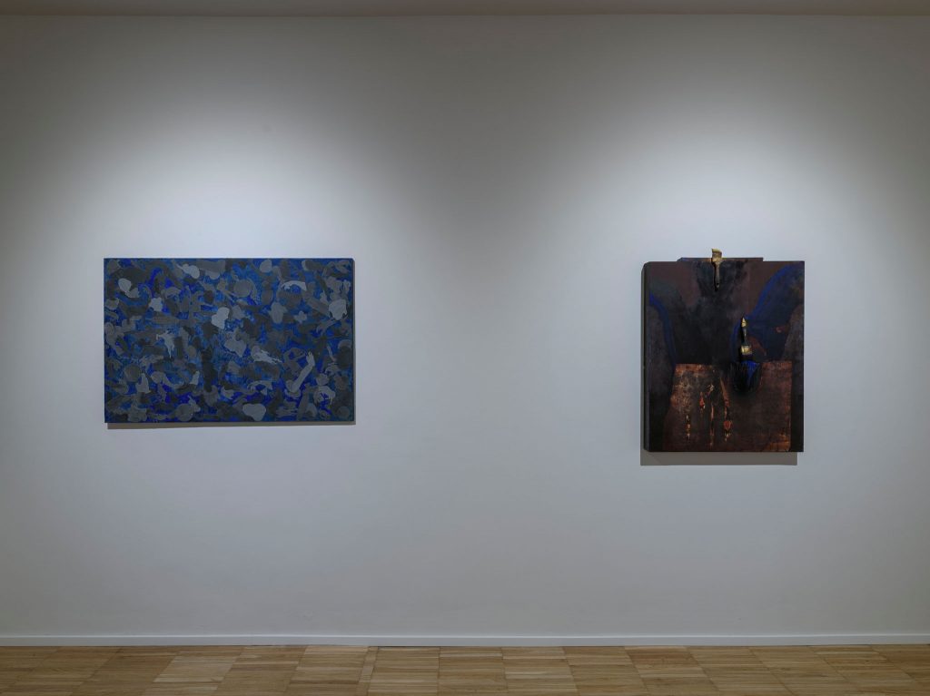 Il legame con il tema delle “stelle” e della luce si evince dai bagliori di fuoco presenti in “A voce l’angelo del pennello” (2007) di Bruno Ceccobelli, dalle immagini antropomorfe, di chiare tonalità, che rischiarano lo sfondo blu intenso di “Notturno italiano III” (2020) di Giuseppe Gallo, o ancora dai sottili, iperrealisti, passaggi chiaroscurali dei panneggi di una lucida stoffa presente in “Skinning” (2023) di Krizia Galfo o dal meteorite che appare al di sopra di un surreale scenario marino in “Pietra celeste” di Leonardo Petrucci. Ancora in “Oscura” (2009) di Piero Pizzi Cannella, dallo sfondo scuro del quadro emerge in superficie un chiarore che pare labilmente identificarsi con la silhouette di un abito femminile sul quale sono disseminate piccoli puntini bianchi che sembrerebbero essere allusivi alle stelle, e in “Senza titolo” (2016) di Marco Tirelli la perfetta geometria di elementi quadrangolari chiari disposti su supporti scuri, crea un gioco dinamicamente attivato che potrebbe essere letto come un astratto empireo illuminato. E, in tema di stelle, di astri, attorno alla raffigurazione di emblemi zodiacali si articola l’opera di Pietro Ruffo, dall’emblematico titolo “Caminante do ceu (Leo/Virgo)” (2018), rievocativa di più antichi cicli pittorici come quello cinquecentesco del soffitto di Palazzo Farnese di Caprarola.