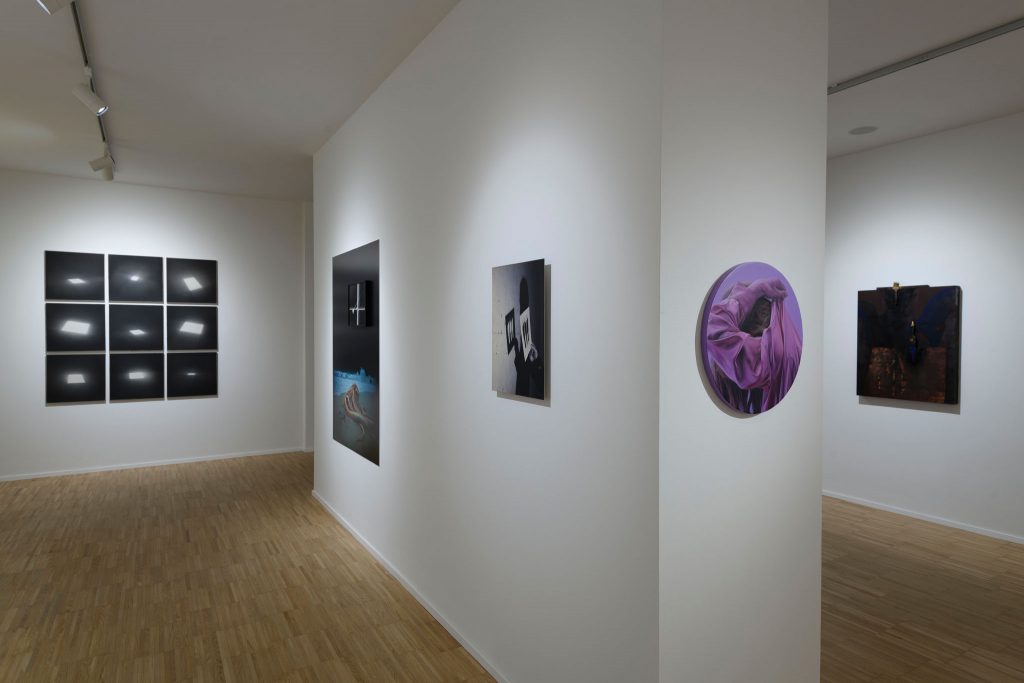 E se nell’opera, di sapore surrealista, “La verità sta dietro la linea” (2023) di Alessandro Calizza gli stilizzati elementi vegetali che si insinuano nei crani di tue teste d’animale suggeriscono metaforicamente la possibilità dell’attivazione di una “luce” vitalizzante, in “Senza titolo” di Nunzio all’idea della luce, si oppone, per paradosso, il nero assoluto articolato in pure forme geometriche che entrano però, di fatto, in dialogo con la parete bianca sulla quale è affissa l’opera, creando un inevitabile gioco di chiaroscuri. A complemento della esposizione, la curatrice, Valentina Ciarallo, ha pensato di mettere a disposizione dei visitatori, tramite un apposito QR Code, l’ascolto di interviste rivolte agli artisti nelle quali ciascuno di loro propone piccoli racconti legati ad esperienze di vita quotidiana.