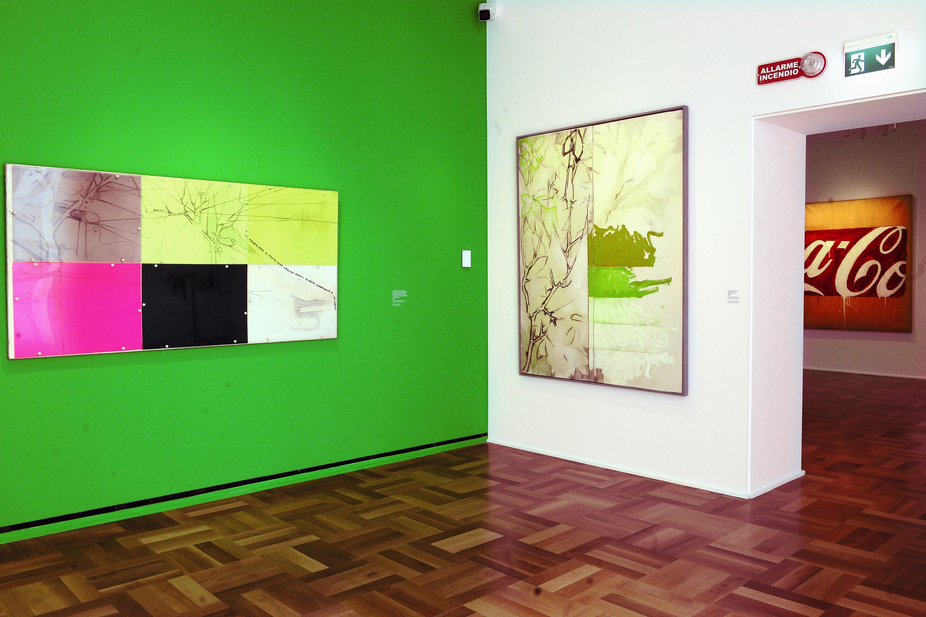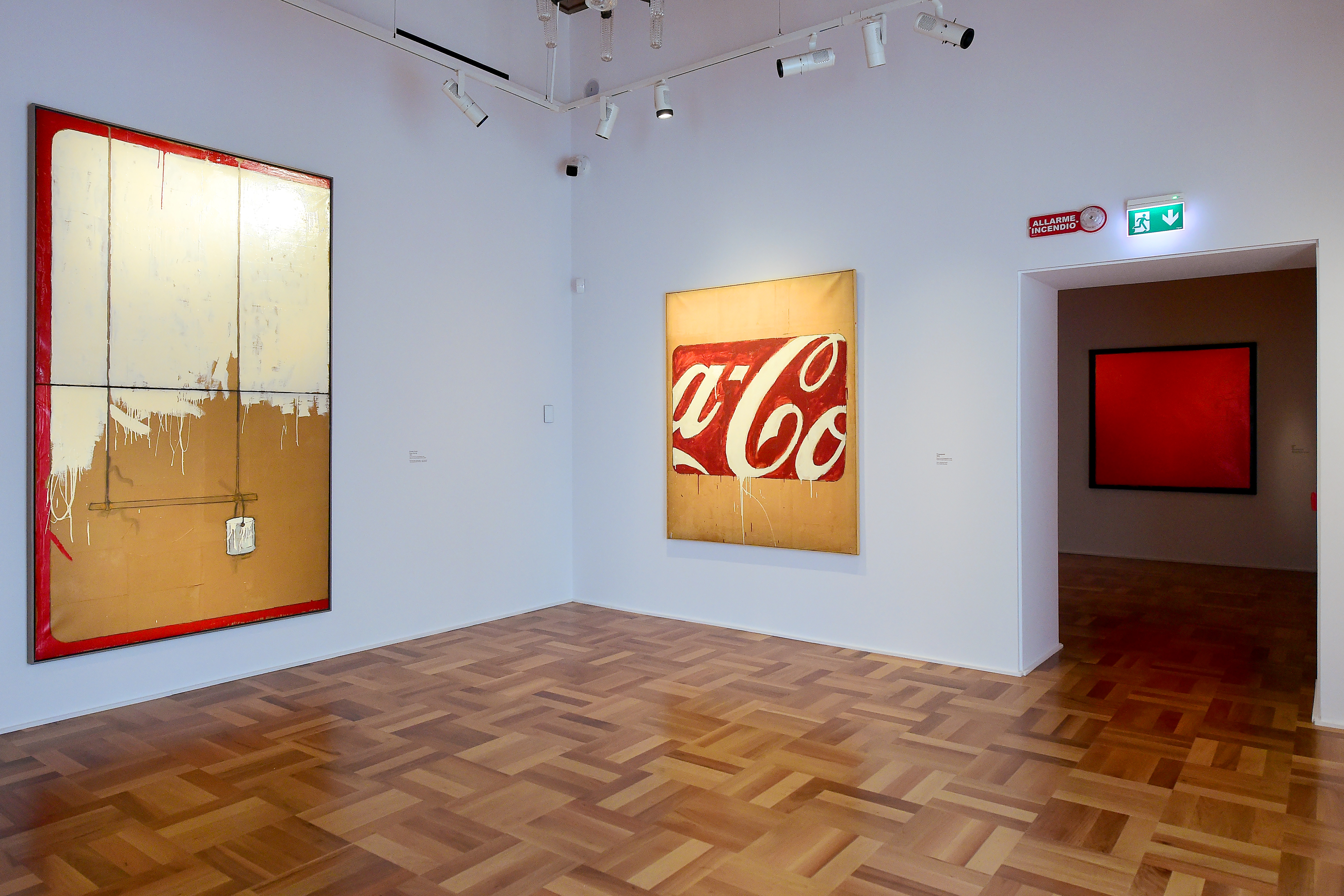 In collaborazione con l’Archivio Mario Schifano sono oltre 50 i lavori della produzione dell’artista esposti, provenienti dalla Collezione di Intesa Sanpaolo, dal Museo del Novecento di Milano, dalla Galleria Internazionale d’Arte Moderna Ca’ Pesaro di Venezia, oltre che da gallerie d’arte e collezioni. Dai rari monocromi con cui Mario Schifano iniziò la sua carriera sul finire degli anni ’50, alle insegne dedicate ai dominatori del mercato – come Esso e Coca Cola – con cui, a metà dei ’60, diede inizio alla sua riflessione sulla comunicazione e sul simbolo nell’era della globalizzazione che appena iniziava a prospettarsi.