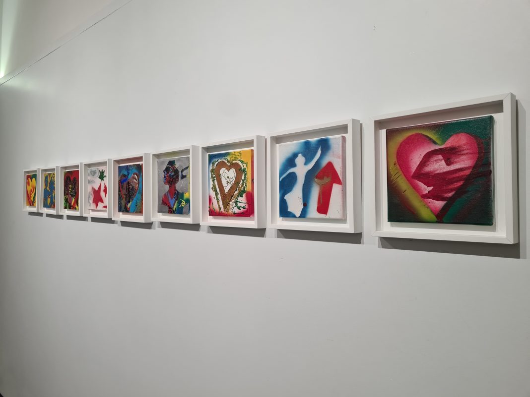 È la stessa Giosetta Fioroni (Roma, 1932) a dichiarare che, in una mostra allestita a Parigi nel lontano 1963, avvenne la svolta che, dalla pittura astratta e informale, la condusse ad accogliere, nelle sue tele, simboli e, infine, immagini. Immagini adottate col prevalente proponimento di dare forma a una narrazione squisitamente intima e soggettiva. Quel racconto privato che si coglie ne “Lo spazio della memoria”, la personale inaugurata in questi giorni nella Galleria Fidia e visitabile fino al 9 novembre 2021. Il medesimo titolo della mostra, curata da Gemma Gulisano, aspira a delineare quello spazio isolato e sottratto, costruito con la ripetizione, pressoché invariata, di immagini volutamente elementari, infantili, come cuori, casette, luna, stelle, spiritelli, uno spazio nel quale e attraverso il quale, l’artista indaga e ripercorre il filo della propria vita, costellata di ricordi, di dolori, di sogni.