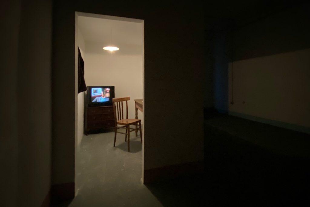 L’atmosfera, che ricorda «l’intermittenza di American Horror Story: Asylum», nota il curatore, sembra essersi «congelata tra gli anni Sessanta e Ottanta del secolo scorso»: a ridosso della parete destra di una stanza buia e spoglia, difatti, la luce fredda e anonima di un vecchio lampadario illumina l’interno di una squallida guardiola di sorveglianza, evidenziandone il contenuto. Tra i pochi ma significativi oggetti, un vecchio televisore a tubo catodico attira magneticamente lo sguardo dei visitatori, trasmettendo a ciclo continuo Il cecchino, opera video del 2018, in cui quattrocento immagini di personaggi pubblici, vengono bucate da 719 colpi di fucile. Cambiando al ritmo incalzante degli spari, i soggetti, avvisa Tolve, «mutano in vittime e contemporaneamente in sagome realistiche, in bersagli da tiro utilizzati da un fantomatico cecchino il cui unico scopo è quello di depurare il mondo».