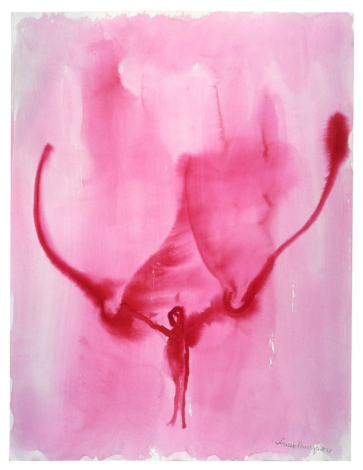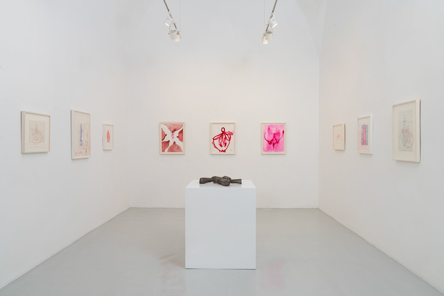 Per Louise Bourgeois la memoria si distacca dall’astrazione della mente e diventa corpo: è nel gesto ripetuto, nel colore che si trasferisce dal corpo al foglio e viceversa, è traccia fisica, sindone che racconta un percorso al tempo stesso doloro e catartico. L’accostamento fra disegni e sculture nell’esposizione allo Studio Trisorio rende ancora più tangibile l’urgenza comunicativa (raccontare agli altri? Spiegare a se stessa?) di Bourgeois: la scrittura, a cui l’artista si è dedicata fin dalla giovinezza, matura nel disegno che, a sua volta, si schiude nell’arte plastica.