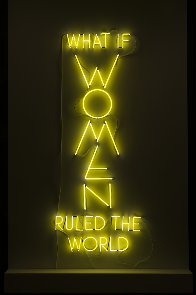 Occorre sicuramente ripensare il nostro stile di vita e al nostro rapporto con la natura, attivandosi per un futuro sostenibile ed equo. Le artiste Desiree Dolron, Tabita Rezaire e Yael Bartana propongono nell’ultima serra un mondo immaginario, suggestionate dai testi di Donna Haraway. Le opere intrecciano immaginari speculativi che esaminano corpi, menti e relazioni con il mondo naturale da diverse prospettive. Spicca il documentario di Yael Bartana, intitolato come il neon che riluce nello spazio – sempre realizzato da lei – e che si interroga sulla domanda che sembra risuonare in tutta l’esposizione: What If Women Ruled The World?