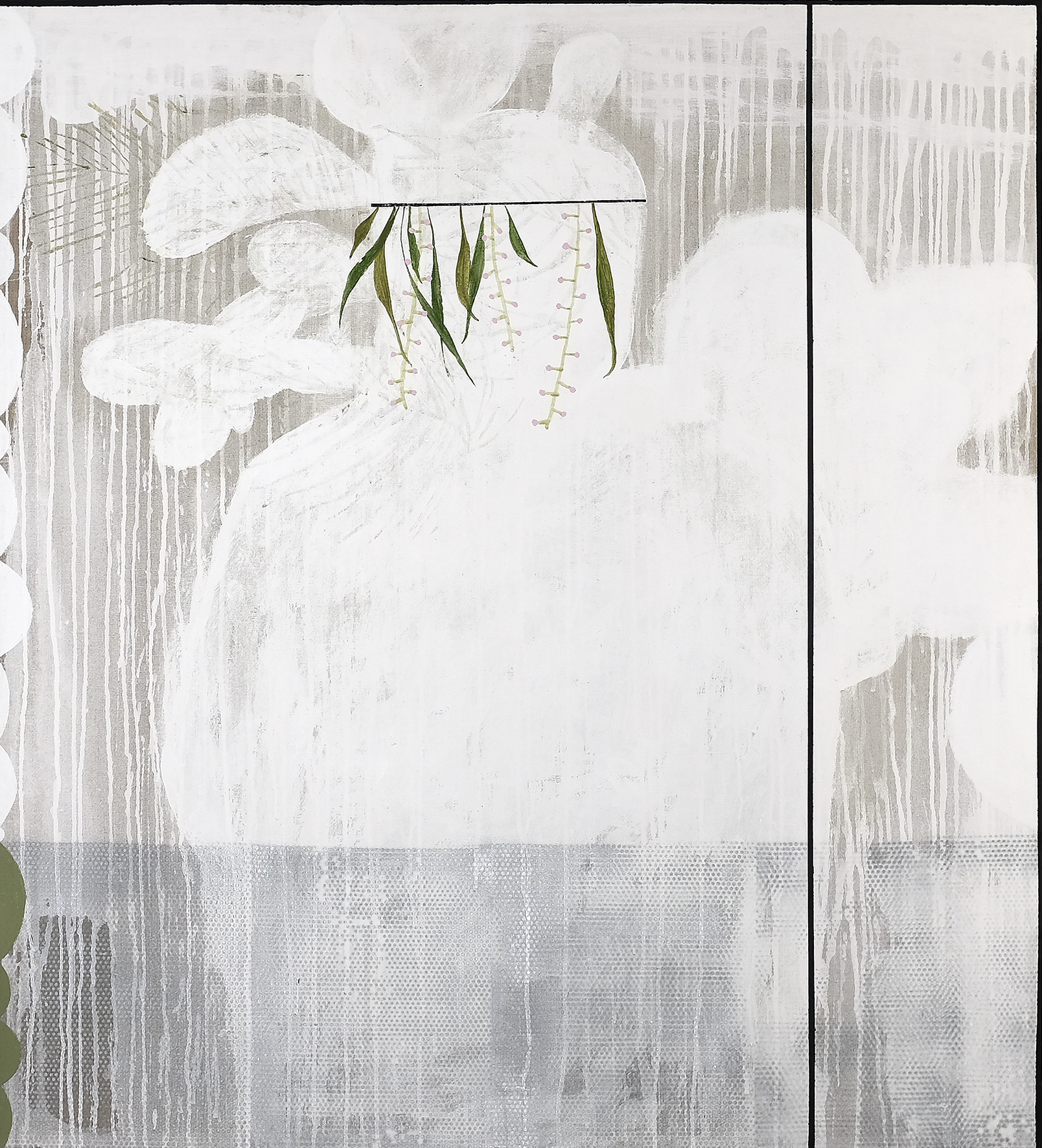 Coser, nato a Trento nel 1965 e docente di disegno all’Accademia di Brera, assume questa predisposizione mentale nella sua pratica pittorica. Le sue opere si dispongono come frammenti di un discorso che si costruisce nell’osservazione: segni a matita emergono da velature quasi evanescenti, figure affiorano tra macchie di colore, mentre rimandi letterari si intrecciano con la gestualità della pittura. L’artista non racconta, non dichiara ma suggerisce, non afferma, lascia spazio alla scoperta.