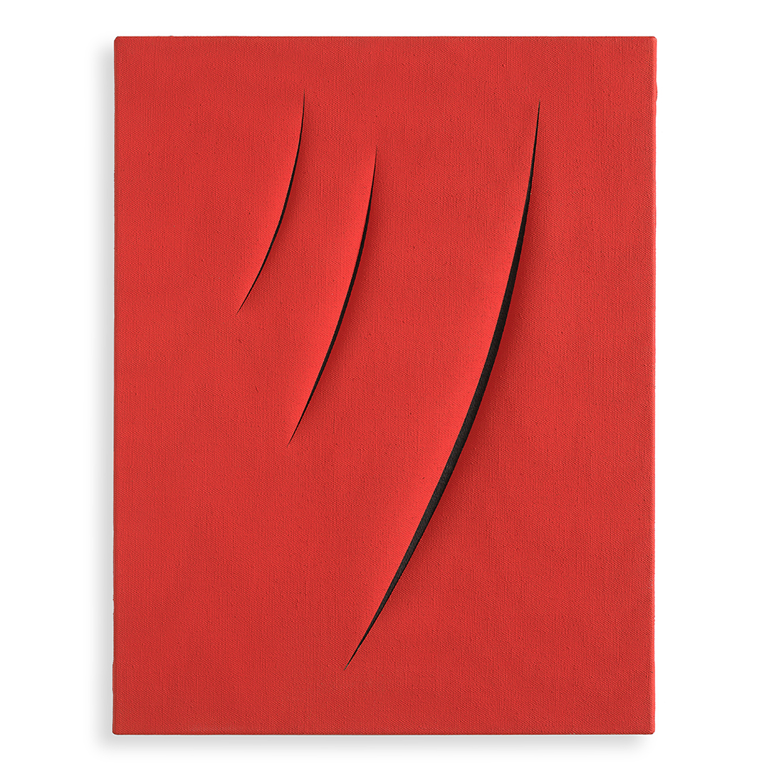 In Fontana, nei suoi splendidi Ambienti spaziali e nei suoi celebri tagli e buchi, a partire dagli ultimi anni ‘40, una essenzialità netta, pulita, radicale, in profondi e minimi gesti che hanno sposato il motto preferito da Ludwig Mies van der Rohe: Less is more: il meno è il più. Una felice, elegante riduzione a conquistare un maggiore spazio e una più alta luce. Secondo le lucidissime parole di Melotti, “Il “taglio” di Fontana è l’emblematico bisogno di uscire dalla giungla informale”.