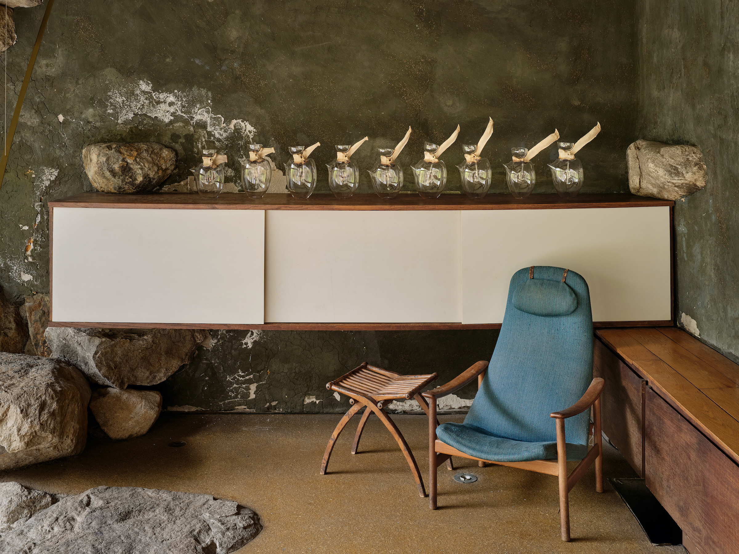 L’installazione mostra la natura parallela delle pratiche di Formafantasma e di Wright: ognuno lavora intuitivamente con l’ambiente circostante per produrre sinergie senza soluzione di continuità. Tuttavia, per Trimarchi e Farresin, la selezione dei lavori ha tenuto in considerazione le narrazioni preesistenti a Manitoga: la casa, il paesaggio e la pratica personale di Wright. Il processo curatoriale ha portato alla luce un fruttuoso riconoscimento dell’architettura all’interno del lavoro di Formafantasma e infine ha permesso ai designer di trattare la casa non solo in quanto spazio espositivo ma bensì di introdurvi gli oggetti in accordo con l’ambiente.