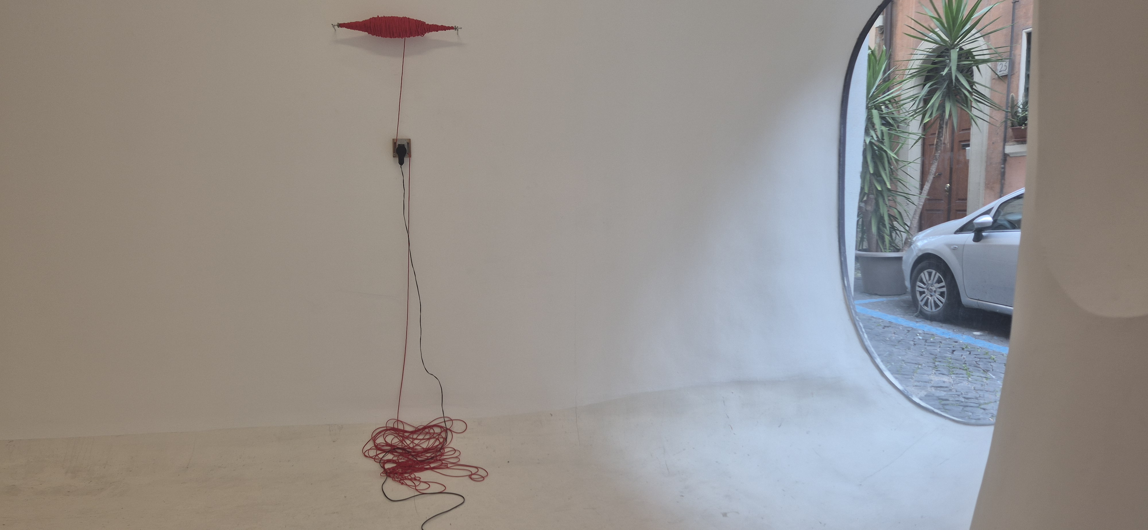 Comunque, quel tempo che appare fermo, immobile, stagnante, e che, invece, impercettibilmente trascorre, inesorabile, srotolando quel famoso filo rosso – che caratterizza Snodatore – e che le Parche possono recidere in qualsiasi momento. Quel tempo che può dare un ritmo, anche sballato, alle vite di ognuno (Metronomo), o fortuito (Clessidra sbagliata che, secondo chi scrive, è l’opera più potente tra i lavori in mostra).