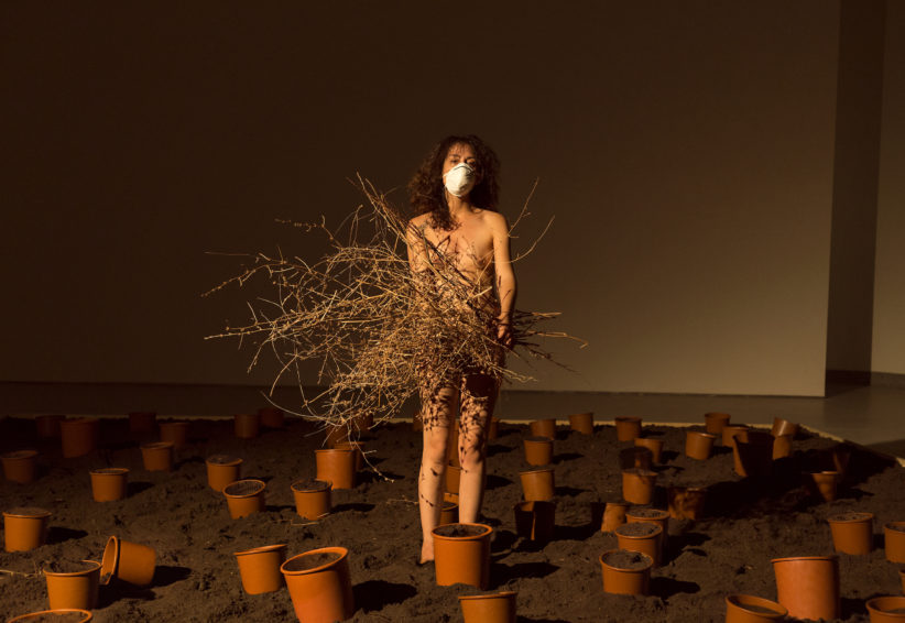 Tutti stimoli (visivi, tattili, sonori) quelli offerti dal percorso espositivo, che diventano pertanto memoria e che, nel contempo, indirizzano lo spettatore verso l’aridità che lo circonda. L’infertilità della terra – un campo arato eppure con rami secchi e vasi vuoti – diventa così il tratto di congiunzione immaginario tra l’Eden primordiale e il paesaggio apocalittico di un futuro non troppo lontano. Una “fine del mondo” evocata non in chiave biblica o di denuncia politica, ma come racconto dell’archeologia di una natura passata e futura.