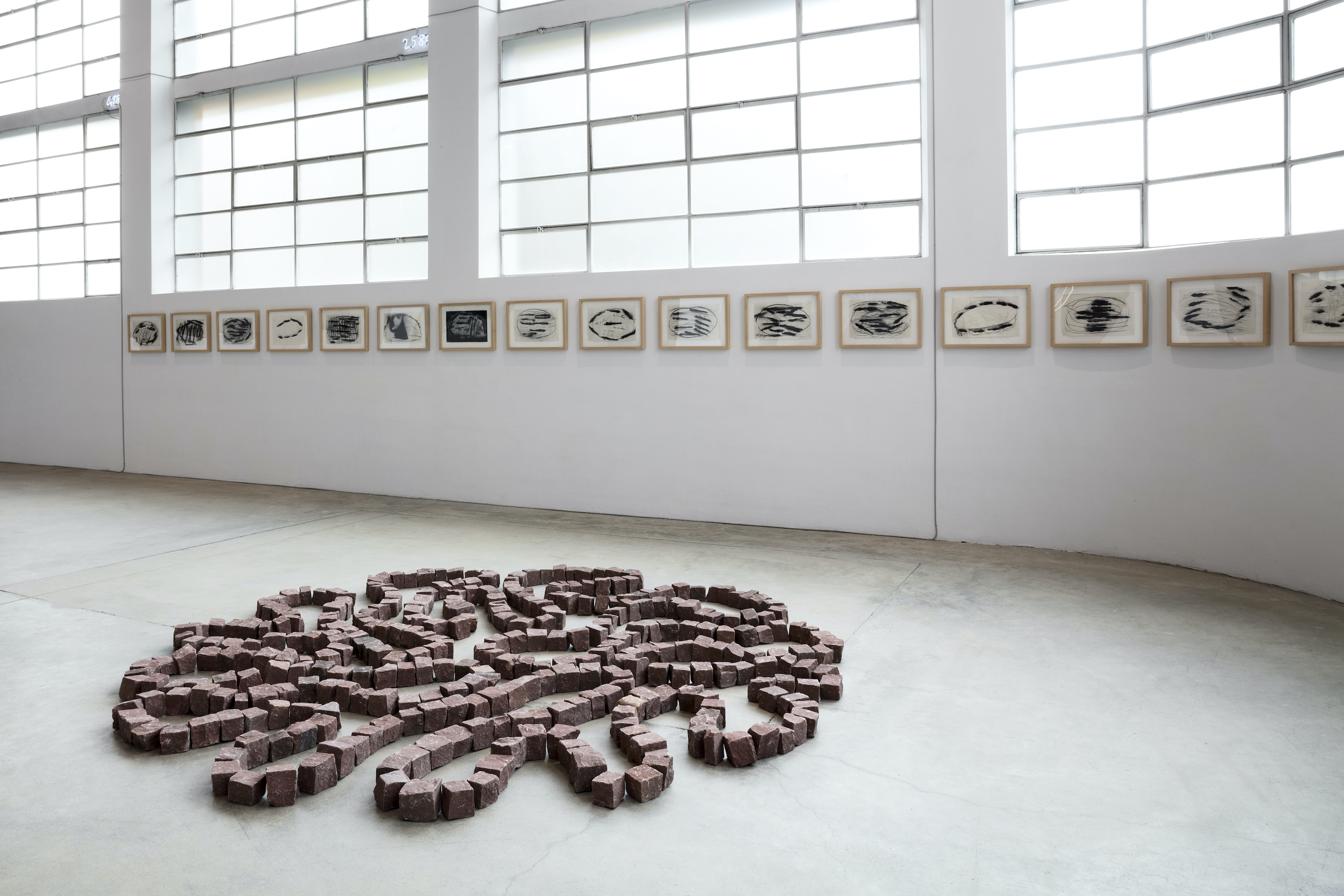 «Viene dato spazio alla pratica quotidiana del lavoro continuo, infinito di Marisa e Mario Merz, caratteristica evidente in tutta la loro vita, che si manifesta, in mostra, anche nella vicinanza delle loro opere. Loro sono sempre stati uno accanto all’altro, hanno lavorato insieme, ma hanno realizzato lavori diversissimi, senza che mai uno prendesse il sopravvento sull’altro. Si sono accuditi vicendevolmente lavorando negli stessi spazi, hanno usato il tempo per tornare – individualmente – sempre sugli stessi temi peculiari di ciascuno. All’inizio della mostra, ad esempio, si vedono delle carte degli ultimi anni di vita di Mario, i temi sono quelli che ha portato avanti nei decenni, come i semi, le foglie, l’erbario dei primi lavori degli anni Cinquanta e Sessanta, precedenti agli oggetti e ai neon.