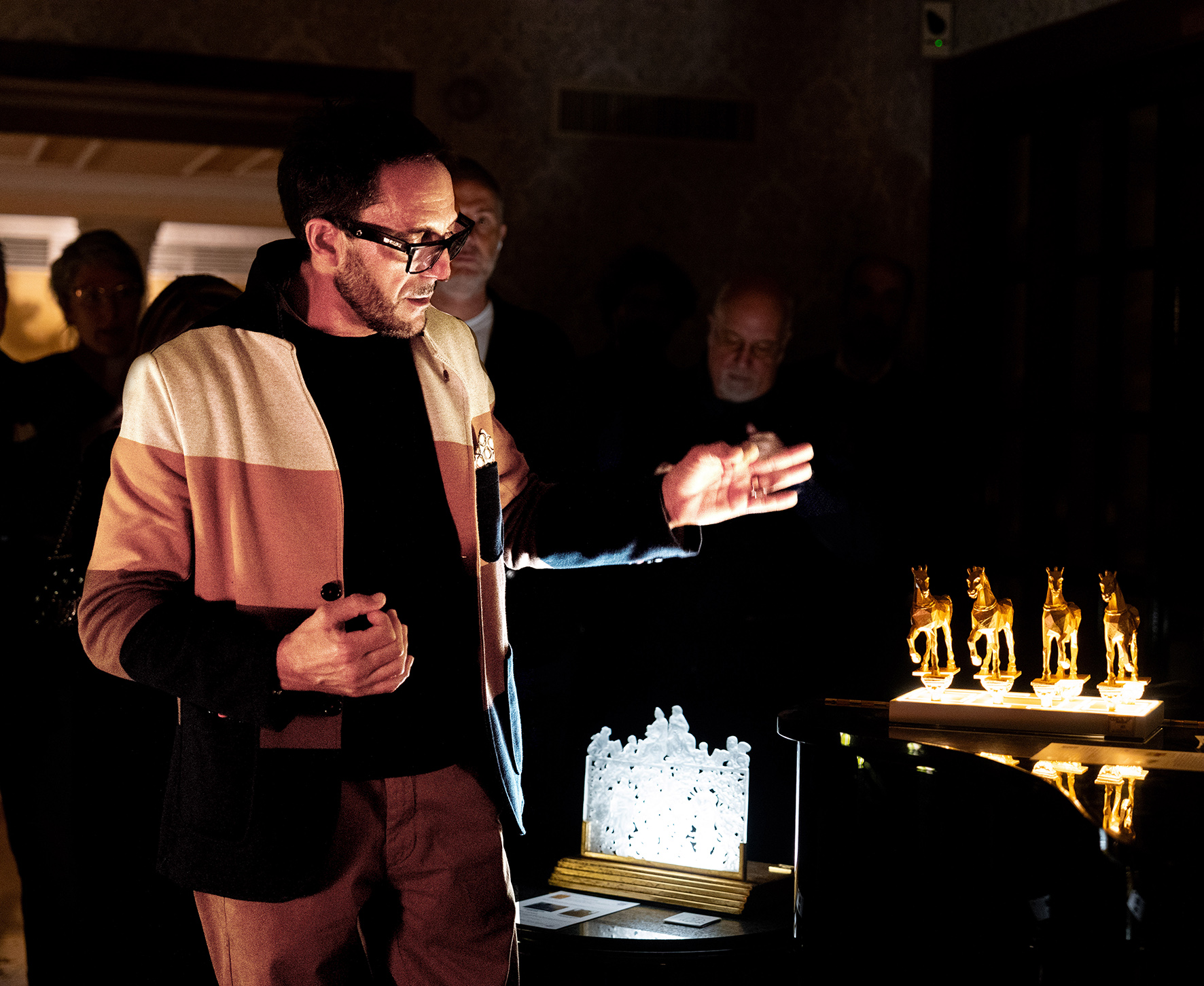 La biografia di Michele Dal Bon rivela un percorso eclettico e ricco di influenze: dalla formazione in storia dell’arte e oreficeria all’esperienza nel design del vetro di Murano, con la specializzazione negli oggetti in vetro di Carlo Scarpa, alla gioielleria e alla passione per l’antiquariato, fino alla collaborazione con il teatro La Fenice e il Fuori Salone di Milano. Questo bagaglio multidisciplinare si traduce in una capacità peculiare di combinare artigianato, tecnologia e sperimentazione artistica.