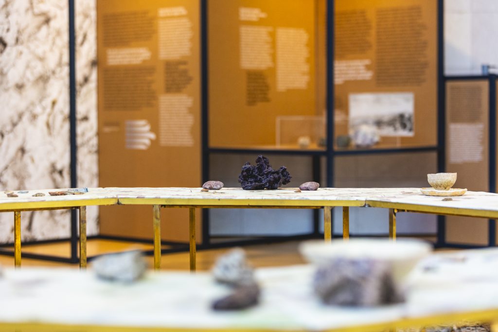 Ecologie Minerali è innanzitutto un dialogo e uno spunto di riflessione che invita il visitatore ad adottare uno sguardo “decolonizzato”, privato da quel senso di superiorità che da sempre l’antropocentrismo comporta sull’ambiente circostante. Quello che sussiste tra regno minerale, vegetale e animale è un continuo scambio, un flusso eterno di interrelazioni da cui l’uomo genera, a cui è inevitabilmente destinato a tornare e di cui è giusto che si consideri parte integrante.