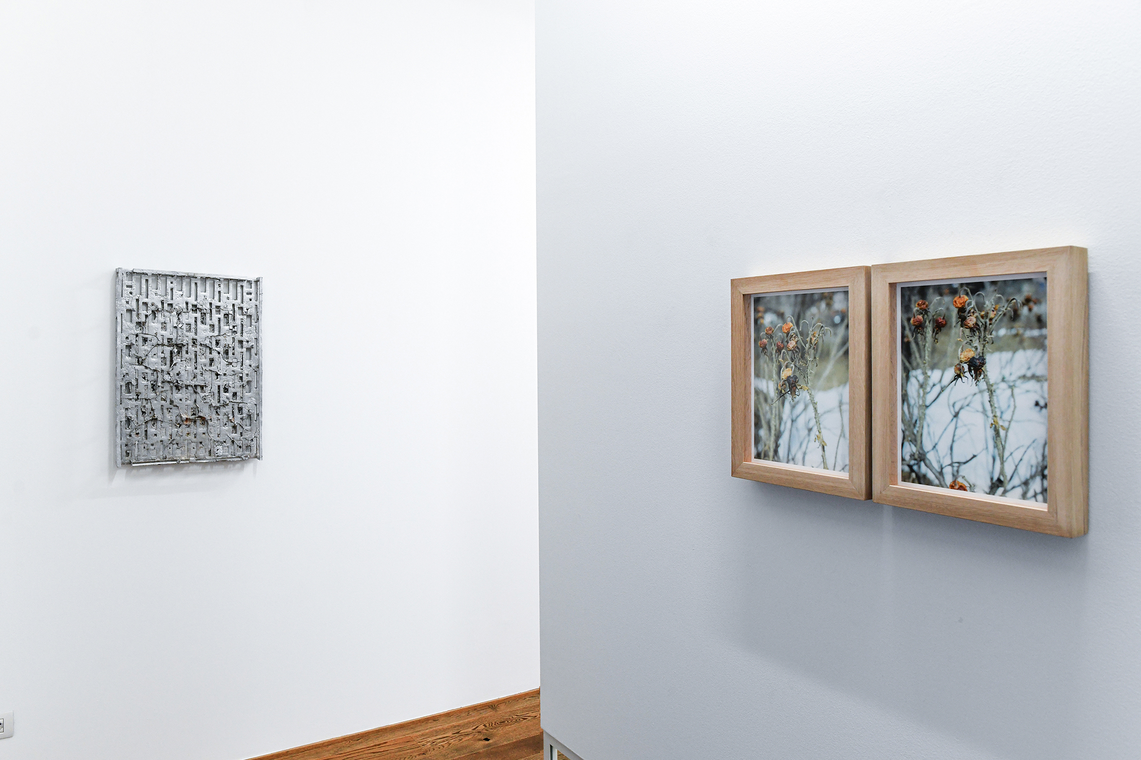 Nel percorso espositivo, ha proseguito la galleria, «i lavori dei due artisti, una ridotta e conclusa serie fotografica, Il Roseto, e Seamless, una serie di sculture in acrilico e polvere di marmo, offrono possibilità di un riconoscimento allusivo: la ripetizione di elementi del Roseto e la ripetizione delle linee di Seamless non si conclude in un rispecchiamento quanto nel tentativo di ‘far vedere’. Ci si trova immersi, coinvolti e distrattamente persi in un perimetro, quello dello spazio espositivo, che grazie alle opere – esempio elettivo di “minimo naturale” – indirizza lo sguardo senza però costringe o limitare lo spazio della possibilità».