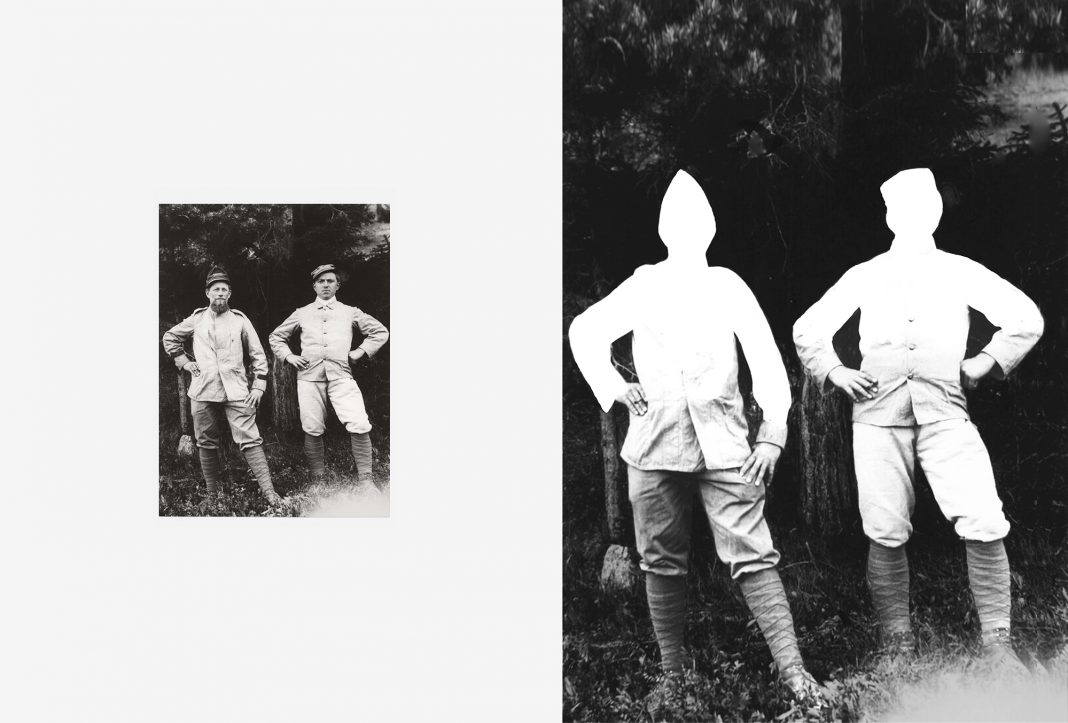 Il secondo capitolo della mostra cambia registro, è la rielaborazione artistica di venti scatti fotografati all’epoca da don Émile Bionaz, appartenenti al fondo fotografico regionale. Cresci, affascinato dalle immagini dell’abate, modifica le fotografie digitalizzate e, giocando con alcuni dei dettagli più significativi, crea delle nuove composizioni fotografiche, con un linguaggio contemporaneo e umoristico.