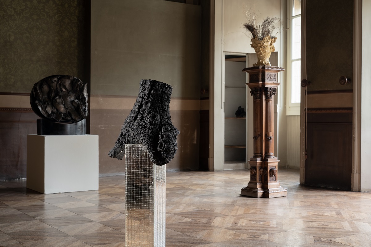 Tra gli esiti più materici, l’Armonia Mundi di Giulia Dal Monte e Isabela Benavides spinge il visitatore a un incontro ravvicinato: la scultura sferica nasconde un suono profondo, udibile solo attraverso il foro sulla sua superficie. Il ritorno all’argilla più radicale pare infine avvenire con Massimo Bartolini in Grotoni e Malocchi, due blocchi di ceramica identici realizzati dallo stampo di una zolla di terra faentina, ispirati ai due stadi del terreno.