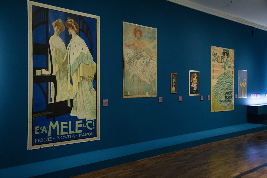 La mostra include una sezione dedicata alla grafica pubblicitaria, arte in cui Napoli si distinse come uno dei maggiori centri italiani, dimostrando di guardare alla scena europea. La necessità di adottare nuovi strumenti di comunicazione chiama all’opera artisti napoletani come Vincenzo Migliaro, a cui “Il Mattino” affida la realizzazione del suo manifesto pubblicitario, o artisti triestini come Marcello Dudovich: suo è uno dei due cartelloni esposti in mostra commissionati dai Grandi Magazzini Mele, magazzini popolari organizzati su modello parigino.
