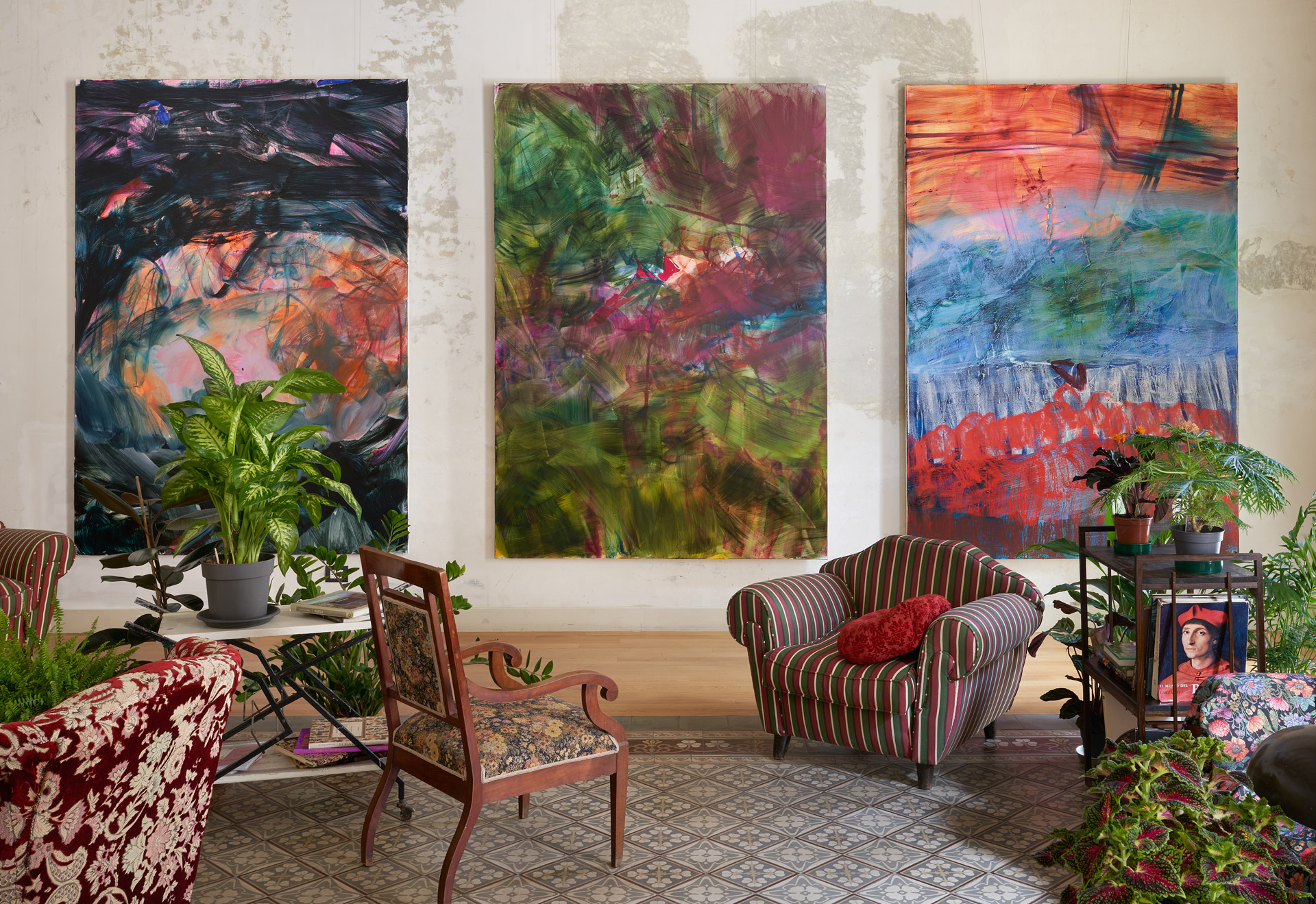 Lungo l’ampia parete della seconda sala, una Wunderkammer di sketch book ci apre delle finestre sulle sue ricerche, le note, gli schizzi, ricreando nell’insieme quella dinamicità cromatica che contraddistingue le grandi tele. Un racconto intimo che fa luce sulla sua storia personale, sulle emozioni che le provocano visioni di colore (sinestesia): è «Così che i miei quadri prendono vita» racconta in un’intervista. Monet, Cézanne, David Hockney e l’artista astratta americana Joan Mitchell, i maestri del colore, sono chiari riferimenti della sua pittura che rifiuta le etichette e celebra l’individualità che non segue regole.